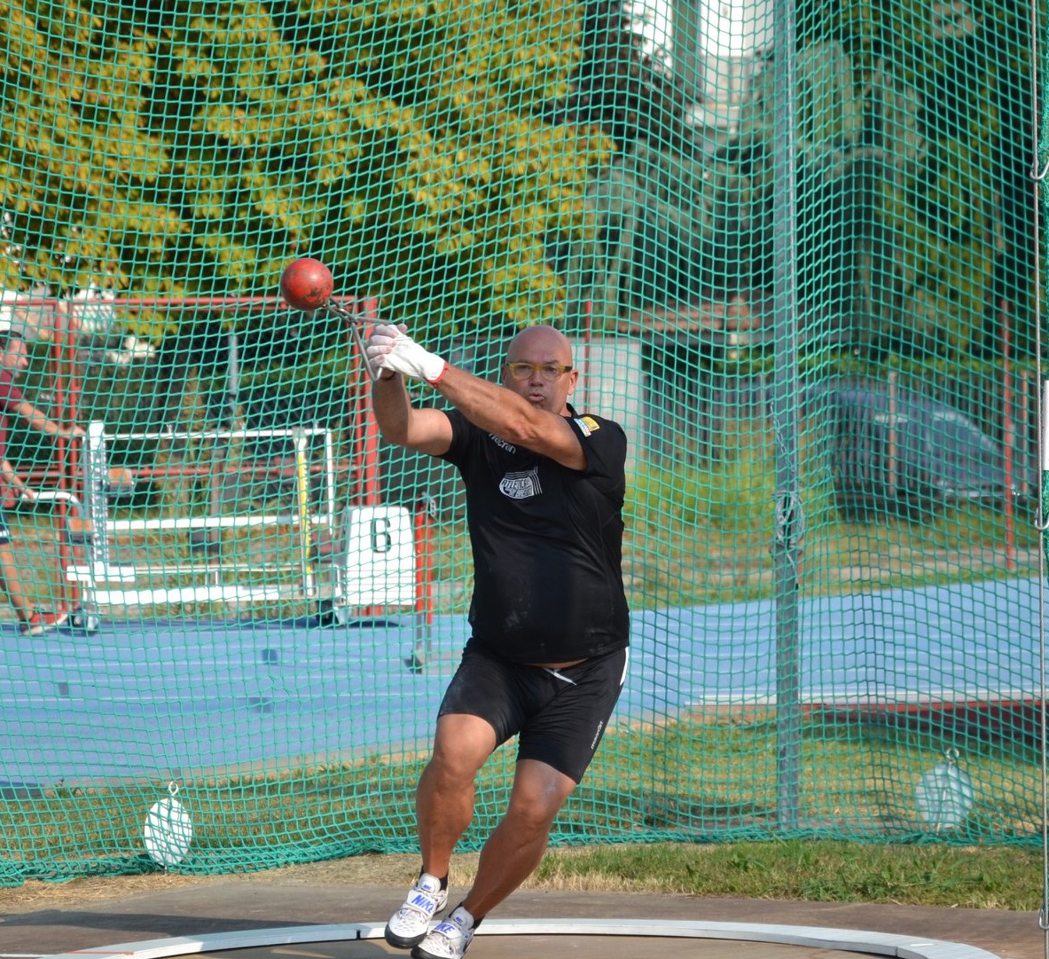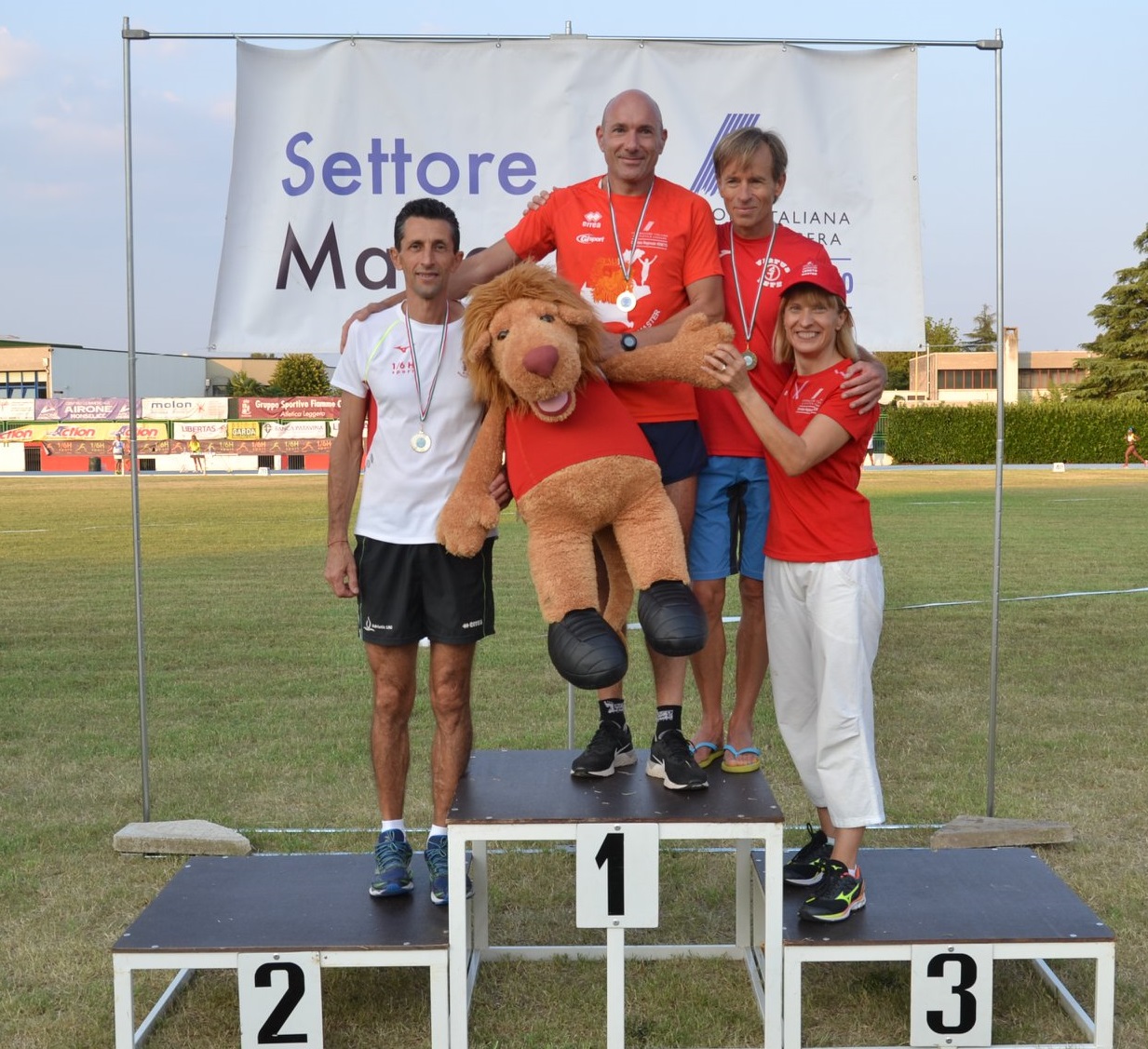 - Andrea Meneghin impegnato con il martellone, il podio dei 5.000 m. SF50 - Credits Martina Cassin).