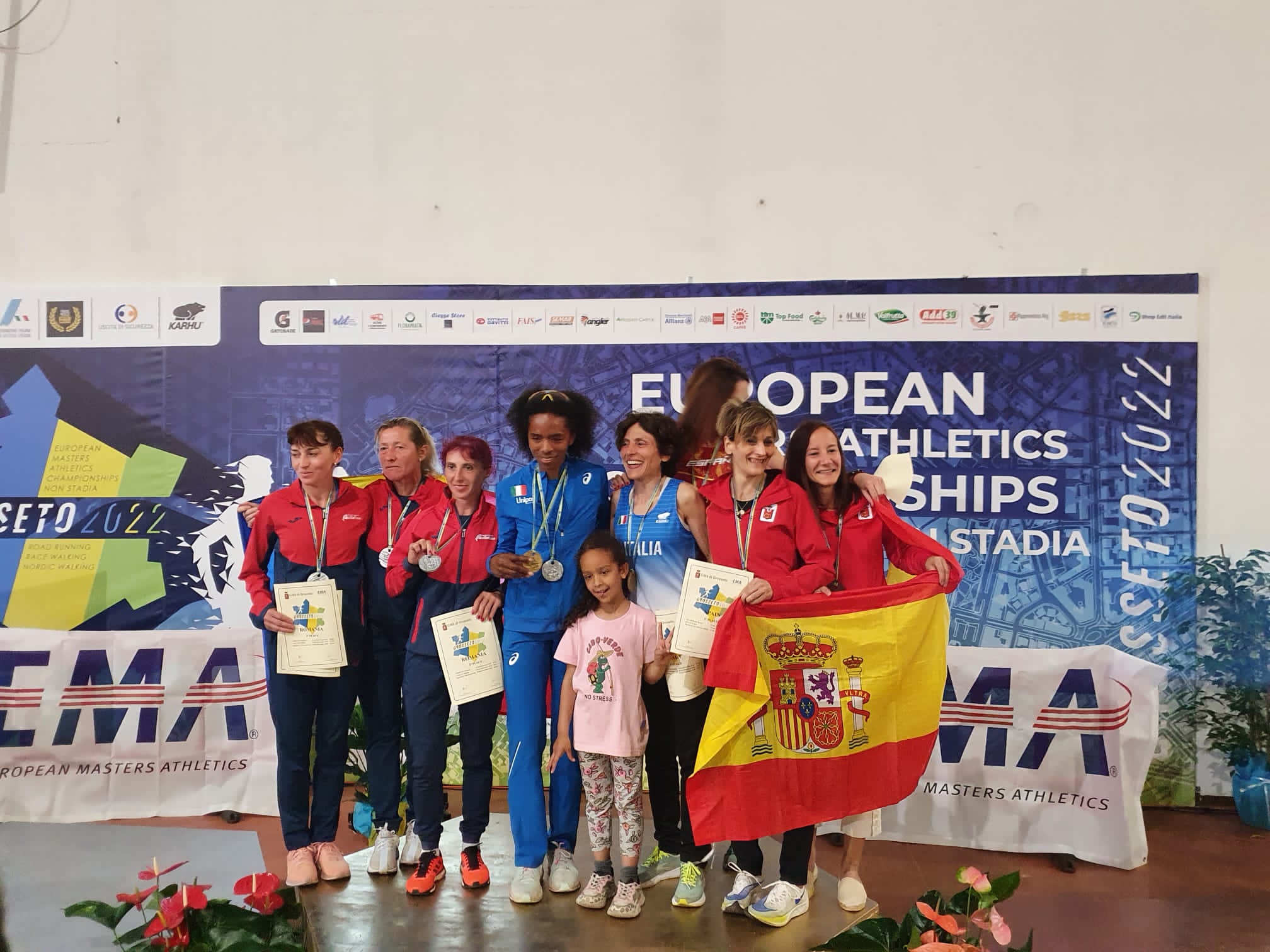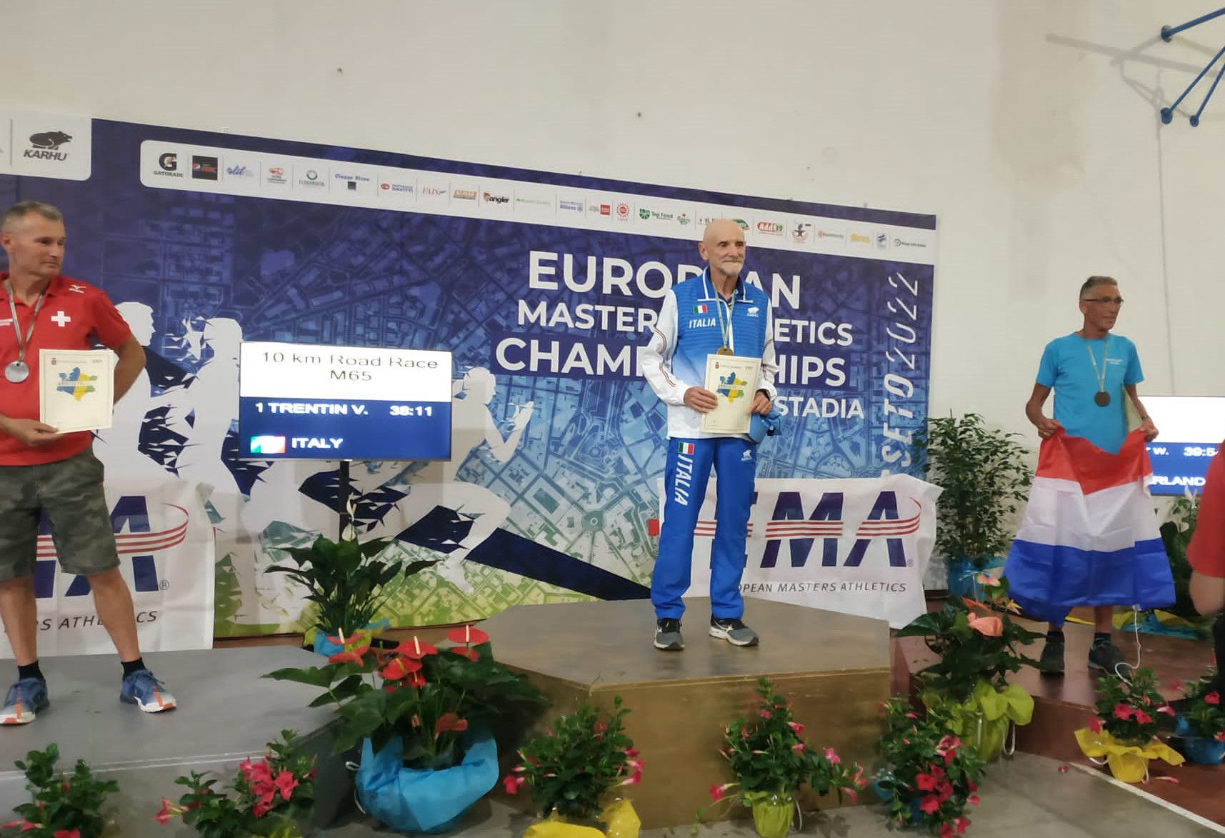 Ma le presenze venete sul podio non finiscono qui. C’erano – come più volte sottolineato - anche le classifiche per nazioni e, dopo Virginio Trentin, Sonia Lopes e Fabrizio Casagrande già citati anche per l’apporto dato all’Italia per il gradino più alto del podio, diamo spazio agli altri rappresentanti regionali che hanno contribuito alla medaglia delle formazioni in maglia azzurra. Si tratta di Antonio Guerra (GS Alpini Vicenza) che, con il settimo posto individuale e secondo fra gli azzurri ha contribuito all’argento a squadre (con Trentin) nella 10 km M65 dietro alla formazione ucraina che ha battuto l’Italia di una manciata di secondi. Per lui, pur senza medaglie nella prova dei 5 km, anche un ottimo sesto posto con una buona prestazione cronometrica. Infine Lucia Tagliapietra (GS Tortellini Voltan) con il decimo posto individuale e terzo delle italiane ha vinto l’argento a squadre nella 10 km W55 dietro alle inglesi.