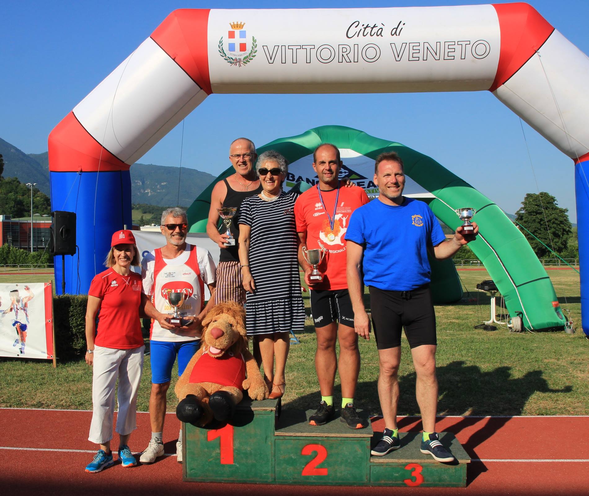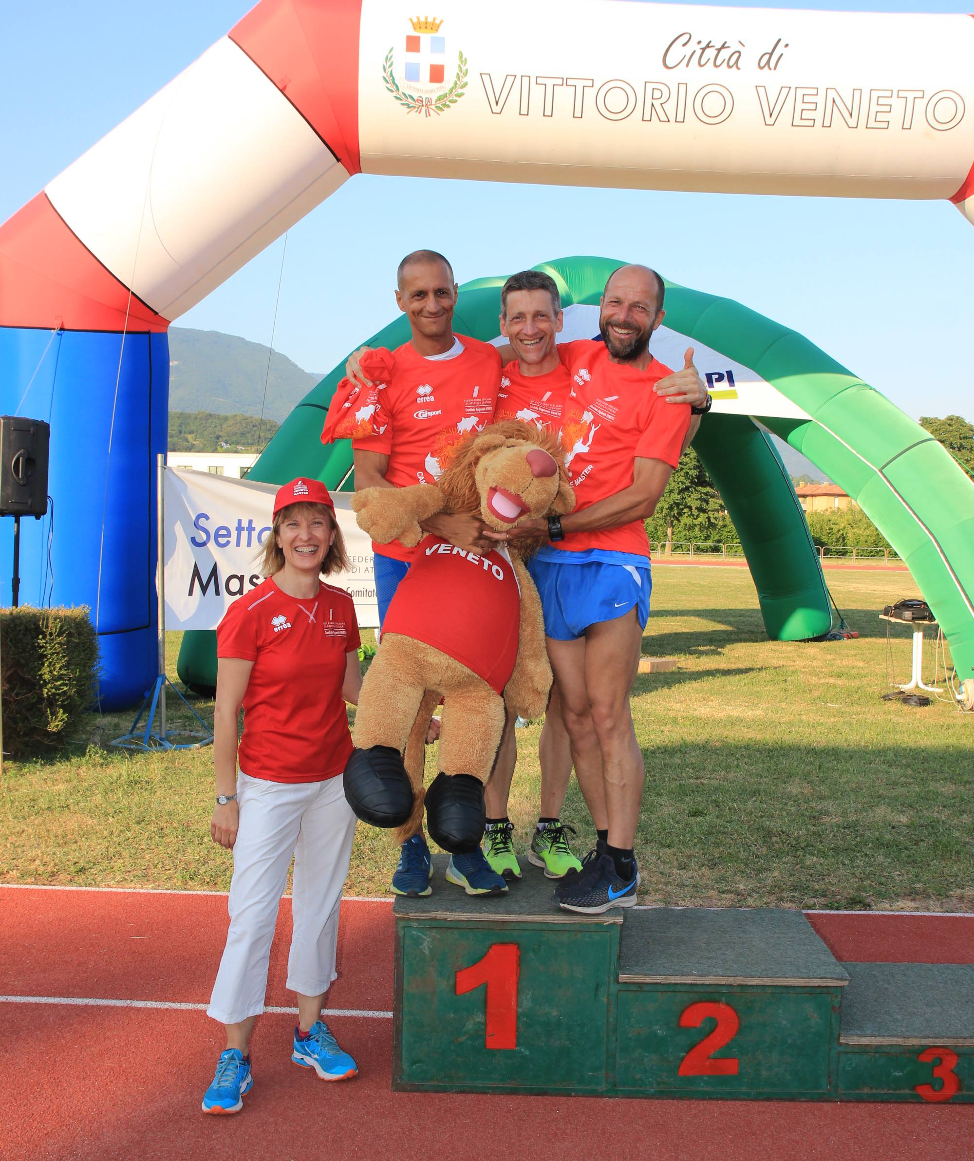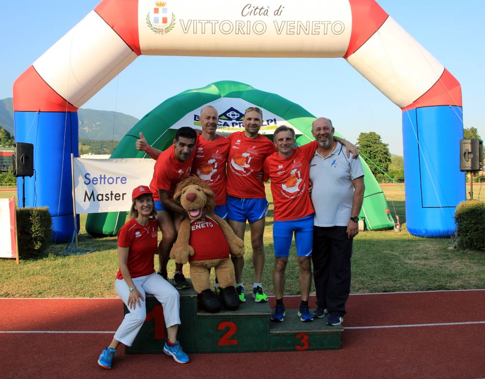 Nelle Foto: Il podio maschile del Memorial Giuseppe Franco (foto Michele Uliana), il podio femminile del Memorial Giuseppe Franco - il primatista italiano Salvatore Puglisi con Rosa Marchi e la mascotte Leonmarco (foto Walter Biz- Vittorio Atletica), l’Atletica Mogliano sul podio della staffetta svedese SM45 - l'Atletica San Biagio sul podio della 4x1.500 con il fiduciario regionale dei giudici Stefano Martin (foto Michele Uliana).