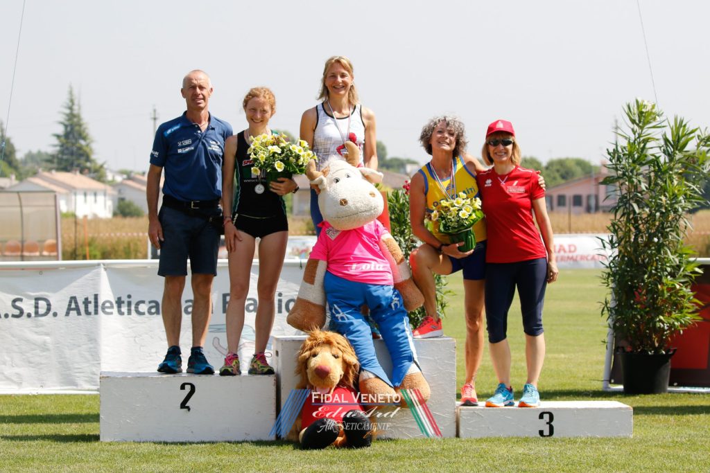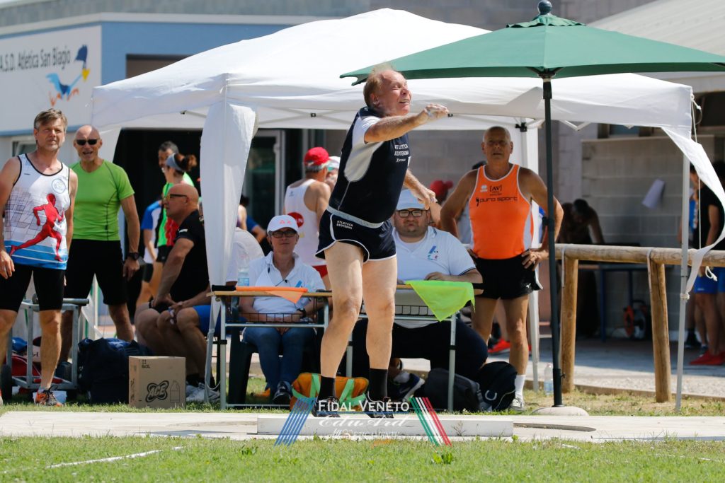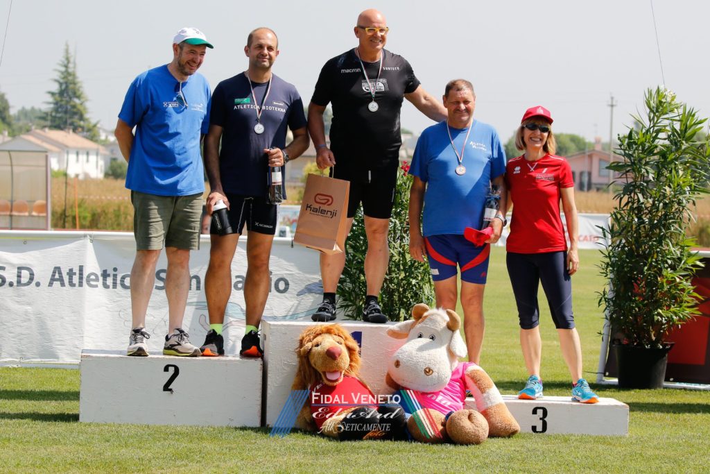 RISULTATI UOMINI. 100. 1. Stefano Bellotto (Riviera del Brenta - SM50) 11”89, v. -1.1 (929 p.), 2. Emanuele Brunelli (Atletica Adige - SM40) 11”75, v. -1.1 (766 p.), 3. Luca Toniolo (Atl. Biotekna Marcon - SM50) 12”59, v. -1.0 (763 p.). 200. 1. Luigi Cicchetti (Atl. Biotekna Marcon - SM45) 24”11, v. +0,8 (917 p.), 2. Giampaolo Cescon (Atletica Ponzano - SM55) 26”14, v. +0.8 (888 p.), 3. Luigi Vanzo (Vicentina - SM55) 26”50, v. +0,7 (849 p.). 400. 1. Luigi Cicchetti (Atl. Biotekna Marcon - SM45) 54”13 (872 p.), 2. Alberto Schiavon (G.A. Aristide Coin 1949 - SM55) 58”40 (848 p.), 3. Giampaolo Cescon (Atl. Ponzano - SM55) 58”92 (823 p.). 800. 1. Alberto Schiavon (G.A. Aristide Coin Venezia- SM55) 2’15”35 (852 p.), 2. Nicola De Marni (Expandia Atl. Insieme Verona - SM45) 2’07”32 (782 p.), 3. Daniele Pedrini (Expandia Atl. Insieme Verona - SM60) 2’26”25 (746 p.). 1.500. 1. Riccardo Lerda (Expandia Atl. Insieme VR - SM45) 4’15”79 (927 p.), 2. Daniele Pedrini (Expandia Atl. Insieme VR - SM60) 4’55”43 (892 p.). 3. Francesco Palma (Vicentina - SM55) 4’46”65 (861 p.). 5.000. 1. Virginio Trentin (Atletica San Biagio TV - SM65) 19’36”47 (781 p.), 2. Guido Migliorini (Atletica Riviera Del Brenta VE - SM50) 17’17”21 (774 p.), 3. Matteo Penazzato (Atletica Riviera Del Brenta VE - SM35) 15’59”52 (689 p.). 200 hs. 1. Stefano Venier (G.A. Aristide Coin Venezia - SM60) 30”82, v. +0.4 (836 p.), 2. Cristian Marin (Riviera del Brenta - SM45) 28”87, v. +1.2 (753 p.), 3. Roberto Fortunato (Vicentina - SM45) 30”29, v. +1.2 (641 p.). Alto. 1. Federico Criscuolo (Atl. Villorba - SM50) 1,69 (895 p.), 2. Massimiliano Ruggio (Vittorio Atletica - SM50) 1,69 (895 p.), 3. Piergiorgio Curtolo (Atl. Biotekna Marcon - SM70) 1,39 (895 p.). Lungo. 1. Luigi Vanzo (Atl. Vicentina - SM55) 5,20 v. +1.8 (866 p.), 2. Renato Gallo (Virtus Este - SM60) 4,69 v. +2.6 (827 p.), 3. Nicola Rossi (Riviera del Brenta - SM45) 5,73 v. +1.6 (825 p.). Triplo. 1. Roberto Bortoloni (Biotekna Marcon - SM75) 7,46 v. -1.5 (888 p.), 2. Renato Gallo (Virtus Este - SM55) 9,94 v. -0.1 (769 p.), 3. Nicola Rossi (Riviera del Brenta VE - SM45) 11,67 v. -1.5 (700 p.). Peso. 1. Luciano Capraro (Biotekna Marcon - SM65) 11,59 (962 p.), 2. Andrea Meneghin (Riviera del Brenta - SM60) 13,04 (939 p.), 3. Piergiorgio Curtolo (Biotekna Marcon SM70) 12,14 (889 p.), Disco. 1. Giampaolo Munari (Voltan Martellago - SM60) 37,33 (745 p.), 2. Luciano Capraro (Atl. Biotekna Marcon-SM65) 33,43 (743 p.), 3. Natale Ventura (Vicentina - SM75) 25,53 (736 p.). Martello. 1. Andrea Meneghin (Riviera del Brenta - SM60) 46,29 (952 p.), 2. Enrico Bellin (Biotekna Marcon VE - SM45) 43,07 (799 p.) 3. Umberto Bonaldo (Atletica Villorba TV - SM65) 25,04 (627 p.). Giavellotto. 1. Lucio Buiatti (Voltan Martellago - SM60) 43,88 (917 p.), 2. Alberto Temporin (CUS Padova - SM45) 41,05 (708 p.), 3. Thomas Tuti (Expandia Atl. Insieme VR - SM45) 40,01 (688 p.). 4×100. 1. Atl. Biotekna Marcon - SM45 (R.Gangini - L.Cicchetti - L.Toniolo - G.Rodriguez) 46″79 (853 p.), 2. Vicentina - SM50 (L.Vanzo - M.Costa - M.Cattani - R.Girardello) 48”56 (846 p.), 3. Riviera del Brenta - SM45 (N.Rossi - C.Marin - M.Scanferlin - S.Bellotto) 46”97 (845 p.). 4×400. 1. Vicentina - SM50 (M. Costa - E. Pison - M. Cattani - R. Girardello) 3’56”17 (785 p.), 2. Atletica Mogliano TV - SM45 (M. Altieri - A. Tosato - M. Bortolozzo - M. Furcas) 4’01”58 (663 p.), 3. Atletica Riviera Del Brenta- SM45 (M.Penazzato - L.Alibardi - C.Bizzotto - M.Pranovi) 4’05”26 (629 p.).