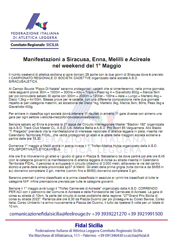 Manifestazioni a Siracusa, Enna, Melilli e Acireale nel weekend del 1° Maggio