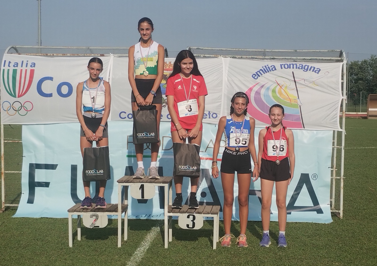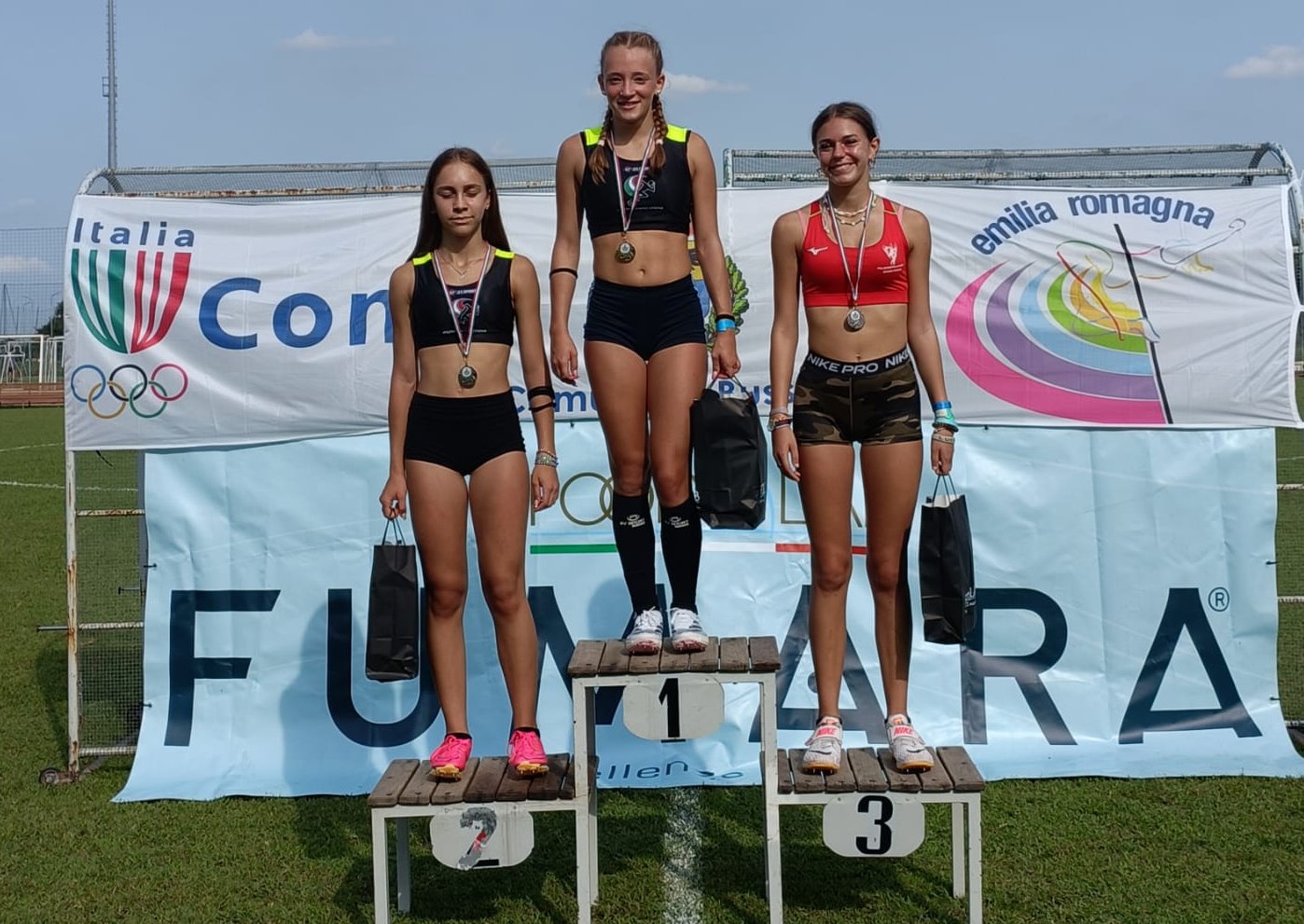 Buzzetti) e 1,53 per Greta Deserti (Polisportiva Atletico Borgo Panigale); nel lungo 4,60 per Matilde Tivegna (Atl. Cinque Cerchi); nel peso 10,98 per Matilde Brunetti (Virtus Emilsider Bologna); nella 4x100 52.69 per Atl. Insieme Verona.