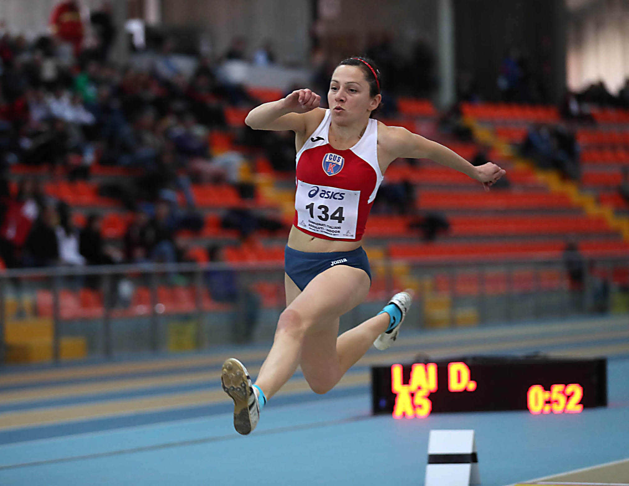 Sempre nel primo pomeriggio ottavo posto per Daniela Lai (Cus Cagliari) nel salto triplo eguagliando, con 12,52 all'unico salto valido in qualificazione, la sua migliore misura di sempre (Padova 2015). La sua serie: X 12,52, X X 12,06 12,17. In mattinata, buone prove nei 60 metri piani con Nadia Neri (Cus Cagliari) che col 7.73 in batteria si qualifica per la semifinale migliorando se stessa (precedente 7.77 ad Iglesias domenica scorsa quando si è aggiudicata il titolo regionale assoluto).