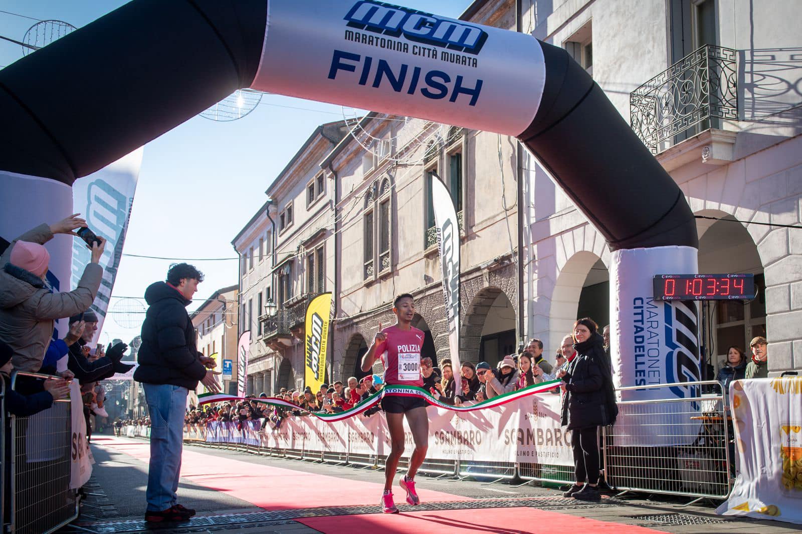Nell’edizione numero 17 dell’evento, organizzato dall’associazione Maratoneti Cittadellesi, si piazza secondo il burundese Jean Marie Niyomukiza (Atl. Libertas Unicusano Livorno, 1h04’07”) mentre arriva terzo il 23enne padovano Riccardo Martellato (Assindustria Sport, 1h04’39”). Quinto il trevigiano Giacomo Esposito (Atl. San Biagio, sceso a 1h05’17”), sesto il bellunese Abdoullah Bamoussa (Atl. Brugnera PN Friulintagli, 1h05’21”).