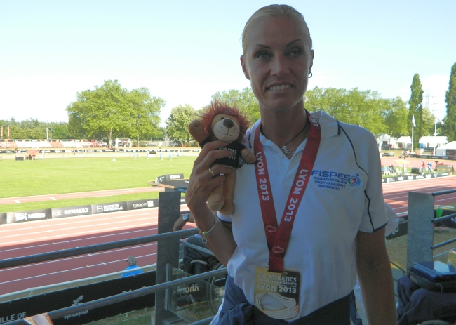 Annalisa Minetti con la medaglia d'oro degli 800 metri conquistata ai Mondiali IPC di Lione