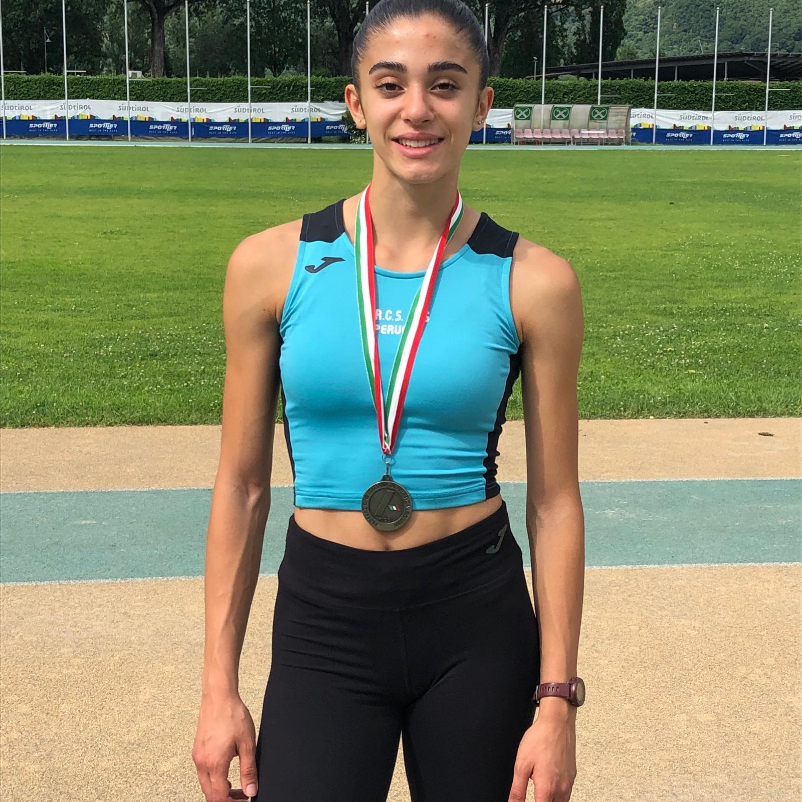 Da lì, però, la gara della perugina è stata un crescendo che l'ha portata a risalire passo dopo passo grazie ai personali nell'alto (1.53) e nel lungo (5.71, misura che rappresenta anche il record regionale promesse) e alle buone prove nel peso (12.24), 200 metri (26.44) e giavellotto (33.92). Qui, con 20 punti da recuperare sul terzo posto e in piena lotta per la zona podio, conclude in 2:34.64, prestazione che le fa chiude in 4502 punti, nemmente troppo distante dal suo primato regionale (4667 punti) che sarebbe potuto cadere senza il problema negli ostacoli.