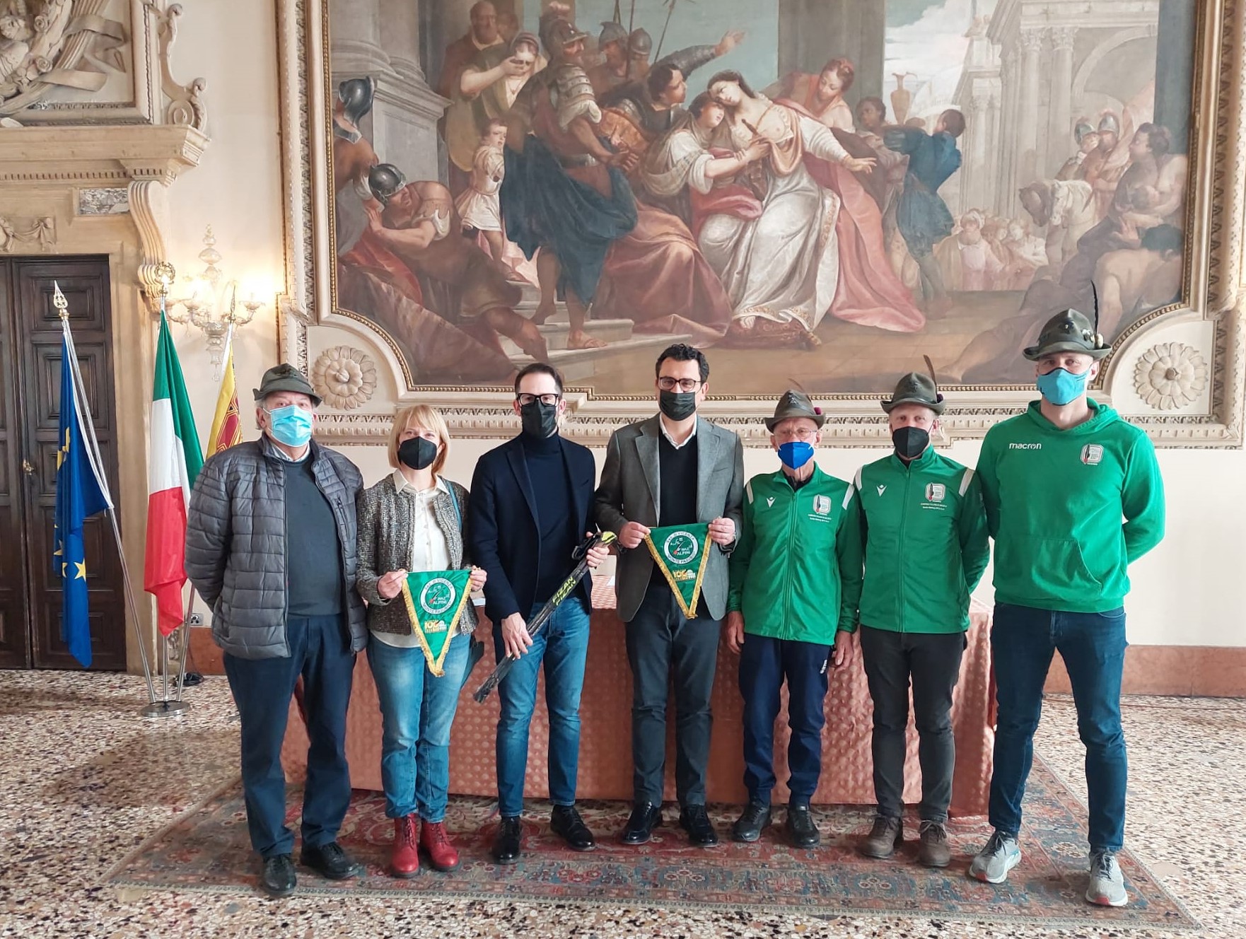 Vicenza è pronta a vestire di tricolore i primi vincitori del Campionato Italiano di Mezza Maratona di Nordic Walking. Si è svolta oggi la conferenza stampa di presentazione nella prestigiosa Sala Stucchi del municipio di Vicenza alla presenza del Sindaco Francesco Rucco e dell’Assessore alle attività sportive Matteo Celebron. Presenti anche Rosa Marchi in rappresentanza del Comitato Veneto della FIDAL, Renzo Carollo, presidente del Gruppo Sportivo Alpini Vicenza, società organizzatrice, i tecnici Ampelio e Siro Pillan e Michele Iotti di Oliviero Toyota.