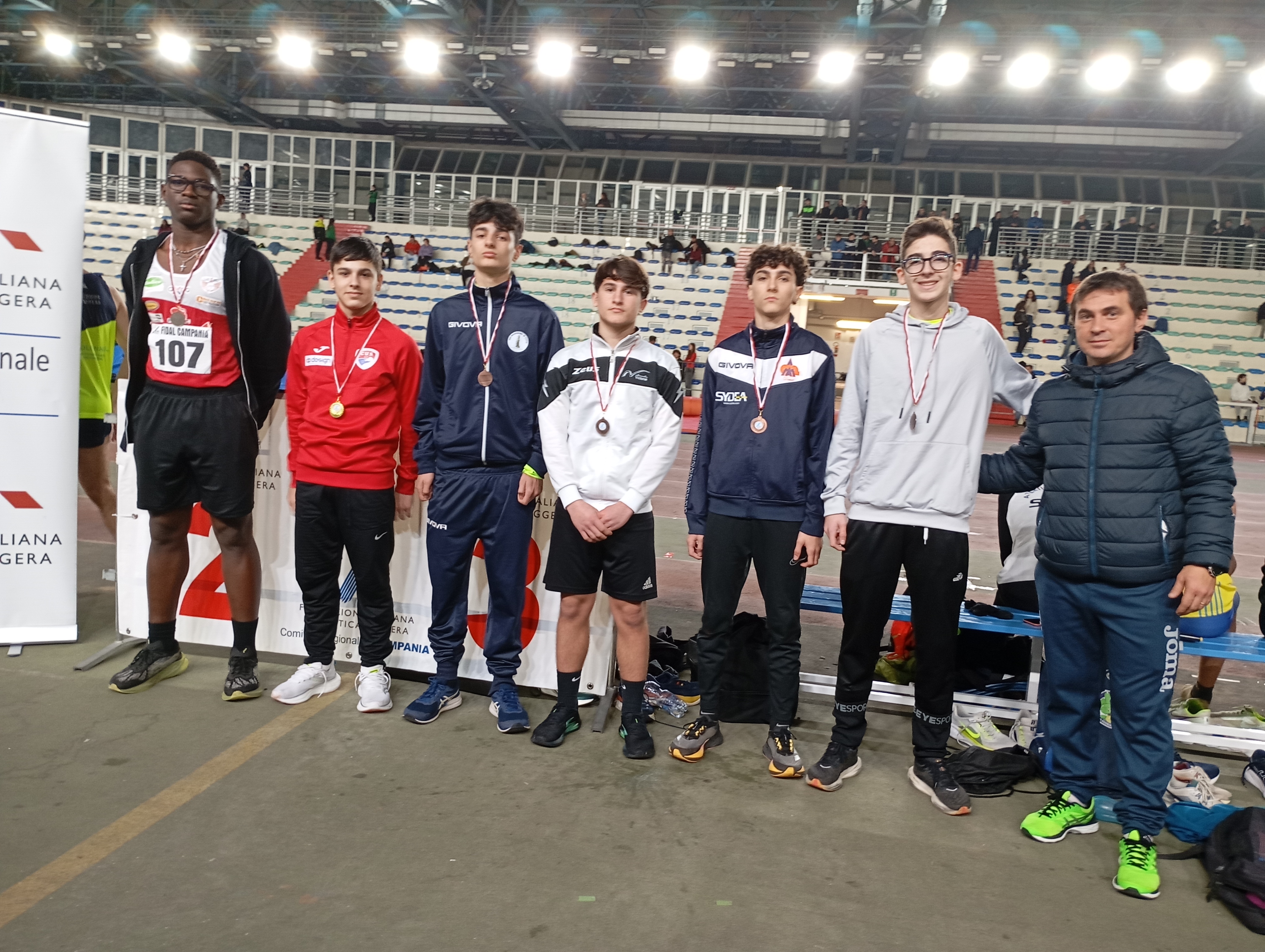 Napoli.- L’Atletica Indoor è ritornata al Palavesuvio di Ponticelli con la 1^ Riunione Regionale del 2025. Una riuscita riunione che ha registrati ottimi risultati tecnici. Nel programma che ha visto la partecipazione delle varie categorie Assoluti/e/Cadetti/e sono emersi ben 4 nuovi record regionali di categoria. Nella gara dei 50m sugli scudi lo sprinter Daniele Orlando(Atletica Agropoli) che sfreccia sulla linea del traguardo bloccando il crono a 5”94 che gli consente il doppio primato regionale sia Juniores che assoluto. Anche nei 50hs Allievi Anand Violante(Running Club Napoli) migliora il record regionale di categoria con il crono di 7”39.