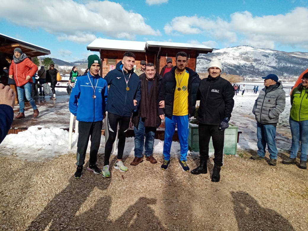 Volturara Irpina.- Lo splendido scenario di neve della Valle del Dragone di Voltura Irpina, ha ospitato i Campionati Regionale di Società di Corsa Campestre 2024. L’evento regionale è stato ben organizzato dal Comitato Regionale Fidal in collaborazione con ASD Montemiletto Team Runners e con il Patrocinio del Comune di Volturara Irpina, l’Associazione Fagiolo quarantino di Volturara Presidio Slowfood, l’area Pic Nic la Valle del Drago e il Ranch della Valle. Il tracciato di 2000m imbiancato di neve ha registrato la prima partenza della gara clou assoluti maschili sulla distanza di 10Km. All’arrivo come da pronostico si è presentato per primo Raffaele Giovannelli del team Interntional Security Service che ha prevalso su Michele Caggiano(Running Club Napoli)e Abdellah Latam,ancora per i colori di International Securty Service.