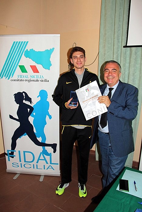Ad inizio lavori, dopo gli interventi di rito, spazio anche ai riconoscimenti. Il vice presidente della Fidal Parrinello ha consegnato la medaglia di bronzo al valore atletico a Filippo Randazzo (Fiamme Gialle). L’atleta di San Cono, allenato da Carmelo Giarrizzo, stabilmente nel giro della nazionale ha quest’anno saltato la misura di 8.01 agli assoluti indoor di Ancona e adesso sta rientrando dopo un fastidioso infortunio che lo ha momentaneamente tenuto lontano dalle pedane.