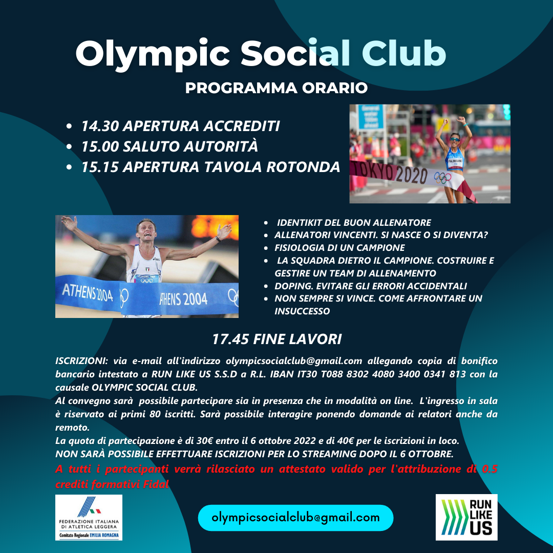 >Il prossimo 8 ottobre, a Bologna, si terrà la tavola rotonda "Olympic Social Club - Come si costruisce un campione?".