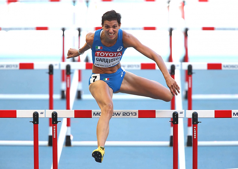Torna in gara alla ricerca di buoni riscontri cronometrici, e contro la statunitense Kellie Wells, Marzia Caravelli (CUS Cagliari), che ripropone la sfida nei 100 ostacoli con Micol Cattaneo (Carabinieri): sono la prima e la seconda degli Assoluti, oltre che un terzo della staffetta veloce di Mosca.