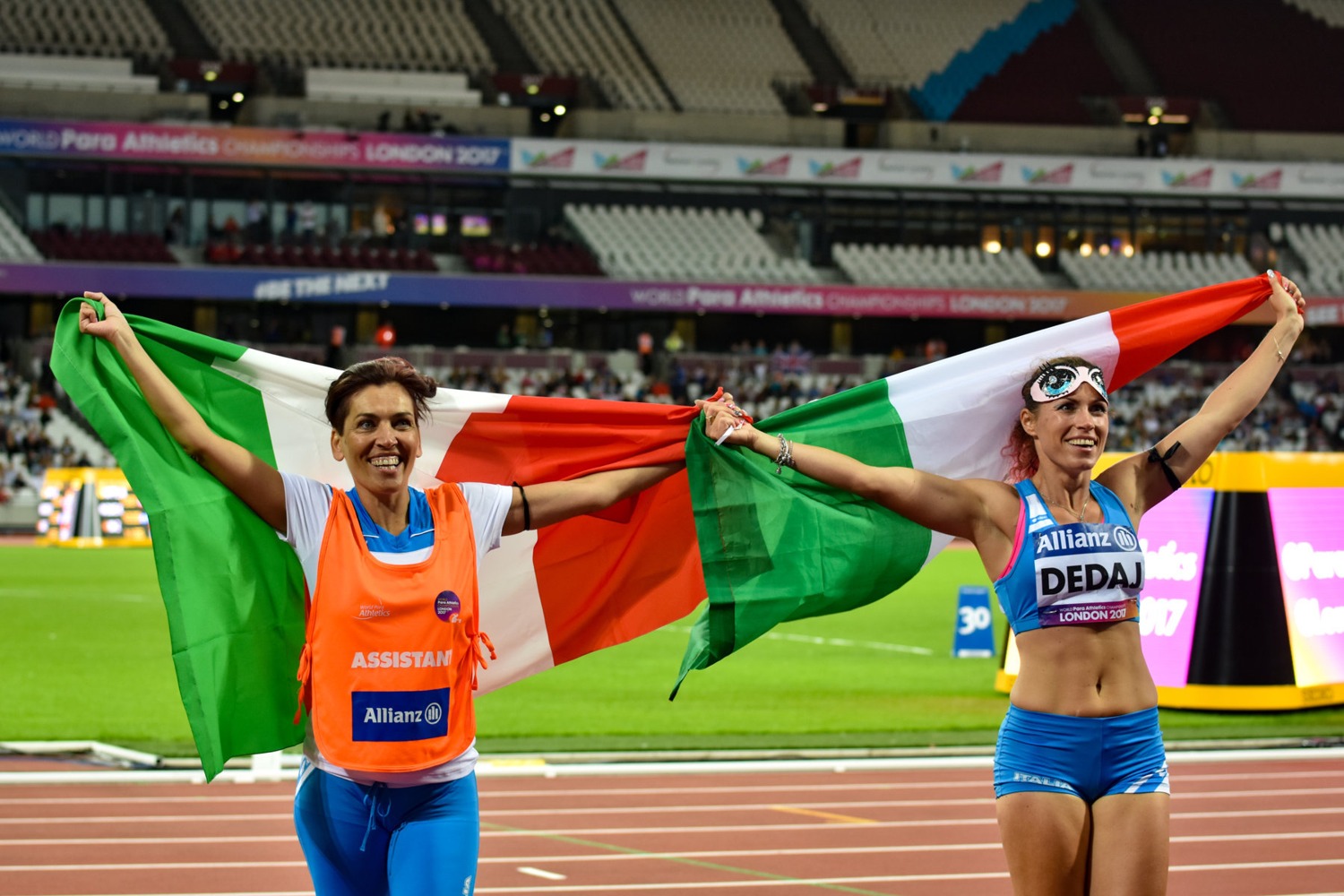 Alla settima giornata di gare arriva una nuova grande soddisfazione per la Nazionale di atletica paralimpica impegnata ai Mondiali di Londra. Questa volta è Arjola Dedaj ad appendere in bacheca il secondo oro per gli azzurri e la medaglia numero 7 dell’Italia a questi Campionati. La portacolori delle Fiamme Azzurre trionfa nel lungo T11 assistita in pedana dalla guida Vanessa Palombini e aggiunge così il metallo che mancava alla sua collezione dopo il bronzo conquistato agli Europei di Grosseto nel 2016 e l’argento continentale di Swansea di due anni prima. In gara Dedaj rompe il ghiaccio con 4,33 in terza posizione cui segue il 4,61 che la fa balzare in testa alla classifica dopo i primi tre tentativi. Il terzo è 4,02, il quarto le vale il podio a 4,65 per poi concludere con 4,59 e 4,45. Le avversarie non riescono ad impensierirla: la giapponese Chiaki Takada, argento, si ferma a 4,49, mentre il bronzo va alla cinese Huimin Zhong con 4,44.