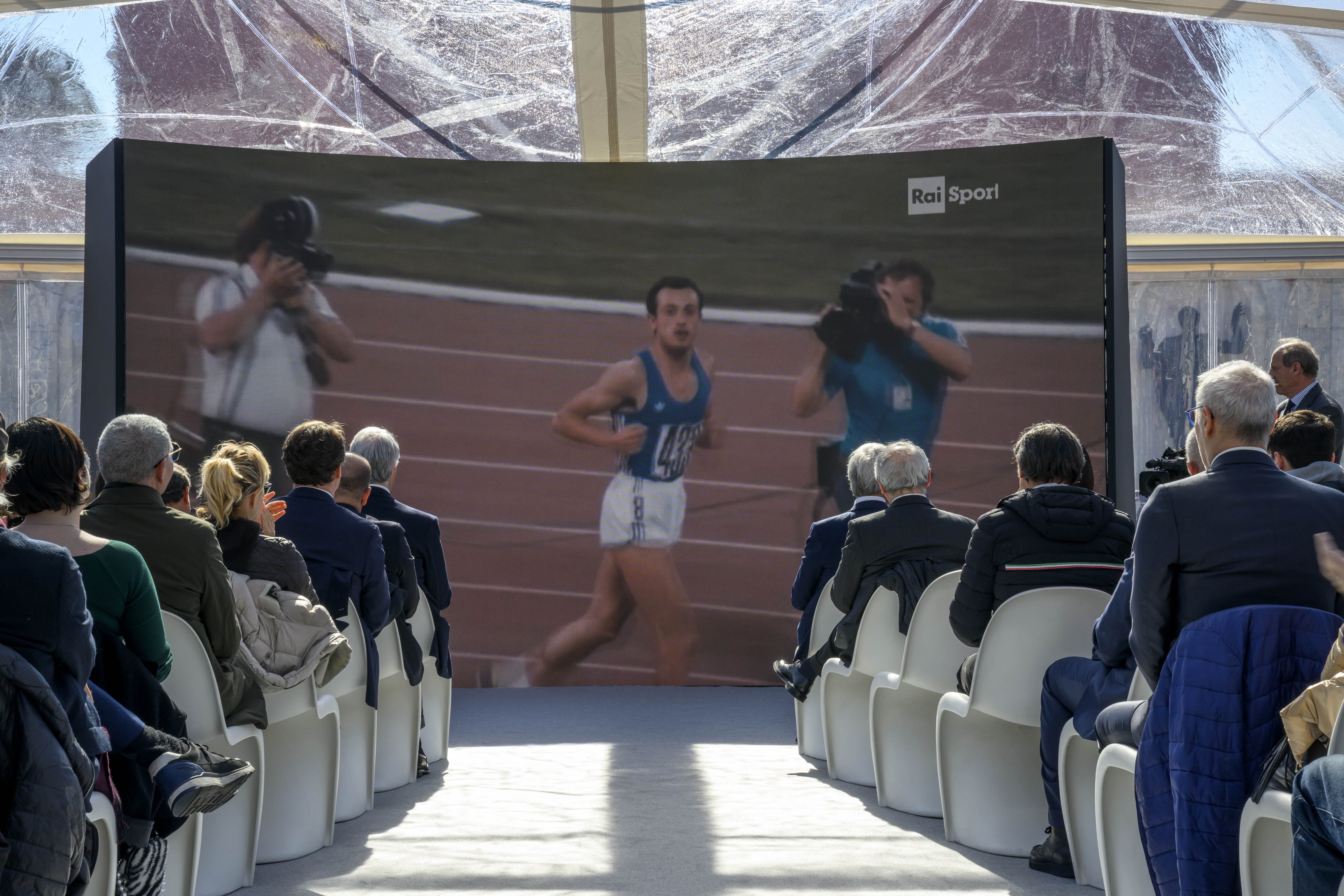 Quanti amici, ai Marmi, per Mennea. Quanto affetto. Nella cerimonia presentata dal vicedirettore di RaiSport Marco Franzelli un fiume di storie, di racconti, testimonianze, immagini storiche dei suoi successi e documenti inediti. Commosso il presidente della FIDAL Stefano Mei: “Non riesco a pensare all’atletica senza Pietro.