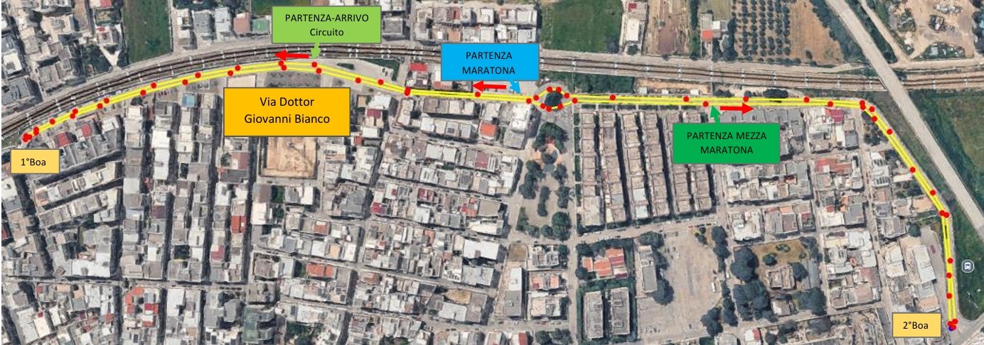 Il percorso, alla luce della nuova distanza, è stato modificato e ampliato: dal circuito di 1 km dello scorso anno si passa a un anello di 2 km da ripetere 21 volte, soluzione scelta per garantire maggiore scorrevolezza tecnica ed evitare la perdita di ritmo causata dai giri di boa troppo stretti. Si parte dalle ore 8:30 in via dott. Giovanni Bianco.