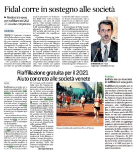 La procedura è aperta da appena tre giorni e le quattro società venete che finora si sono riaffiliate alla Fidal per la stagione 2021 hanno già ricevuto indietro la quota d’adesione all’attività federale.