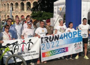 DI CORSA PER AIL - Domenica 29 maggio è previsto l’arrivo dei testimoni della seconda edizione della Run4Hope Massigen a sostegno di AIL nei principali capoluoghi regionali. Grande l’entusiasmo dimostrato sin dalla partenza avvenuta sabato 21 maggio da parte dei 20.000 podisti aderenti in tutta Italia anche grazie a oltre 400 associazioni sportive, 23 reparti dell’Esercito Italiano e alcuni gruppi aziendali. Coinvolte numerose amministrazioni locali, che assieme ai runners stanno promuovendo la raccolta di donazioni a favore di AIL per la lotta alle leucemie, linfomi e mieloma. Le donazioni dei runners a favore di AIL, che stanno maturando in questi giorni, sosterranno anche i progetti promossi a beneficio dei pazienti ucraini affetti da tumori del sangue accolti in Italia che saranno assistiti sul territorio italiano dalle varie sezioni provinciali. Un’iniziativa unica nel suo genere, articolata su staffette regionali che si svolgono in contemporanea, con partenze e arrivi organizzati tendenzialmente nei principali capoluoghi regionali. Protagonista dell'evento è la onlus veneta “Run4Hope Italia”, al fianco di AIL nel 2022 nel 2024 e di Fondazione AIRC per la ricerca sul cancro nel 2021 e 2023: una staffetta nella staffetta per contraddistinguere il primo periodo di svolgimento del progetto a cavallo tra i Giochi olimpici di Tokyo 2020 (21) e Parigi 2024. L'obiettivo del progetto è mettere in movimento migliaia di persone: ogni passo di corsa e ogni donazione, piccola o grande che sia, risulta fondamentale per sostenere i due enti beneficiari, nel nome dello sport, del benessere individuale e collettivo, della socialità e della solidarietà. Nell’arco dei 9 giorni della manifestazione il testimone transita di città in città in base al cronoprogramma definito attraverso tappe giornaliere che indicativamente si aggirano tra i 50 e i 100km. I vari gruppi podistici si sono mediamente impegnati nel percorre una parte delle tappe giornaliere in forma sincronizzata tra loro. L'AIL è impegnata da oltre 50 anni nel promuovere e sostenere la ricerca scientifica nel campo delle leucemie, mettere in atto l’assistenza sanitaria necessaria a migliorare la qualità della vita dei malati e dei loro famigliari, e nel sensibilizzare l’opinione pubblica alla lotta contro le malattie ematologiche. Attualmente l'AIL si articola in 82 sezioni provinciali distribuite su tutto il territorio nazionale.