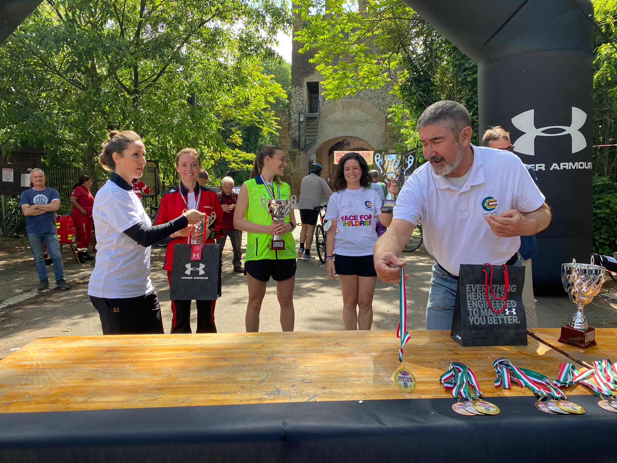 Nel quartiere di Monte Sacro a Roma si è disputata domenica 8 maggio la 7^ Race for Children. Manifestazione organizzata da Roberta for Children Onlus in collaborazione con Italsport e con l’associazione Insieme per l’Aniene, con il patrocinio del III e IV Municipio, dell’Ente RomaNatura, dell’EPS CSAIn, lo Studio legale Nctm e Triumph Group International. Gara competitiva sul percorso stradale e sterrato di 12 km, nella Riserva naturale della Valle dell’Aniene, aperta anche alla camminata sportiva del Fitwalking; ed una non competitiva di 5,8 km.