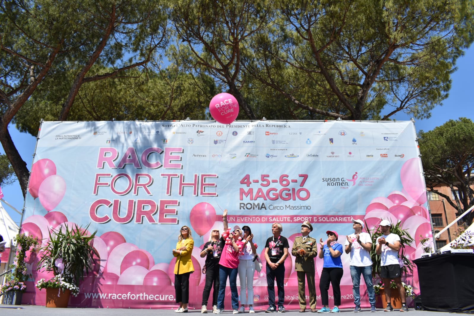 A dare il via ufficiale all’evento: il Ministro per lo Sport e i Giovani Andrea Abodi, il Presidente del CONI Giovanni Malagò, la Vicepresidente della Regione Lazio Roberta Angelilli, l’Assessore all’Agricoltura, Ambiente e Ciclo dei Rifiuti Sabrina Alfonsi delegata del Sindaco di Roma, l’Assessore ai Grandi Eventi, Sport, Turismo e Moda di Roma Capitale Alessandro Onorato, l’Assessore alla Cultura, Pari Opportunità, Politiche Giovanili e della Famiglia, Servizio Civile di Roma Capitale Simona Renata Baldassarre, l'Incaricato d'Affari ad interim presso l'Ambasciata degli Stati Uniti d'America in Italia Mr. Shawn Crawley, il Fondatore di Komen Italia Riccardo Masetti, la Presidente di Komen Italia Daniela Terribile, il Direttore Scientifico del Policlinico Gemelli IRCCS di Roma Giovanni Scambia, il Questore di Roma Carmine Belfiore, il Direttore Ospedaliero Policlinico Militare di Roma “Celio” Brigadier Generale Carlo Catalano, l’Ing. Guido Parisi Capo del Corpo Nazionale dei Vigili del Fuoco, il comandante del Centro Sportivo Carabinieri Col.