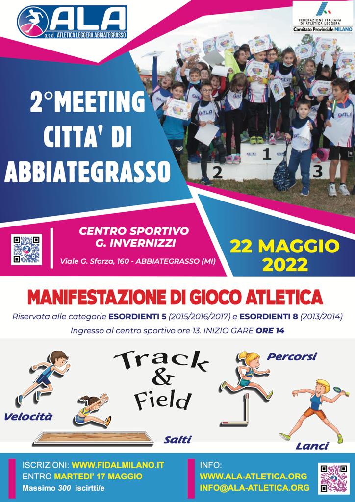 Sempre domenica 22, appuntamento per i più piccoli ad Abbiategrasso (viale Sforza 160). Eso 5 in un triathlon con 50, lancio pallina e percorso misto; Eso 8 in un triathlon con 50, lancio pallina e salto in lungo. Iscrizioni entro martedì 17 (max 300 iscritti). Inizio ore 14.
