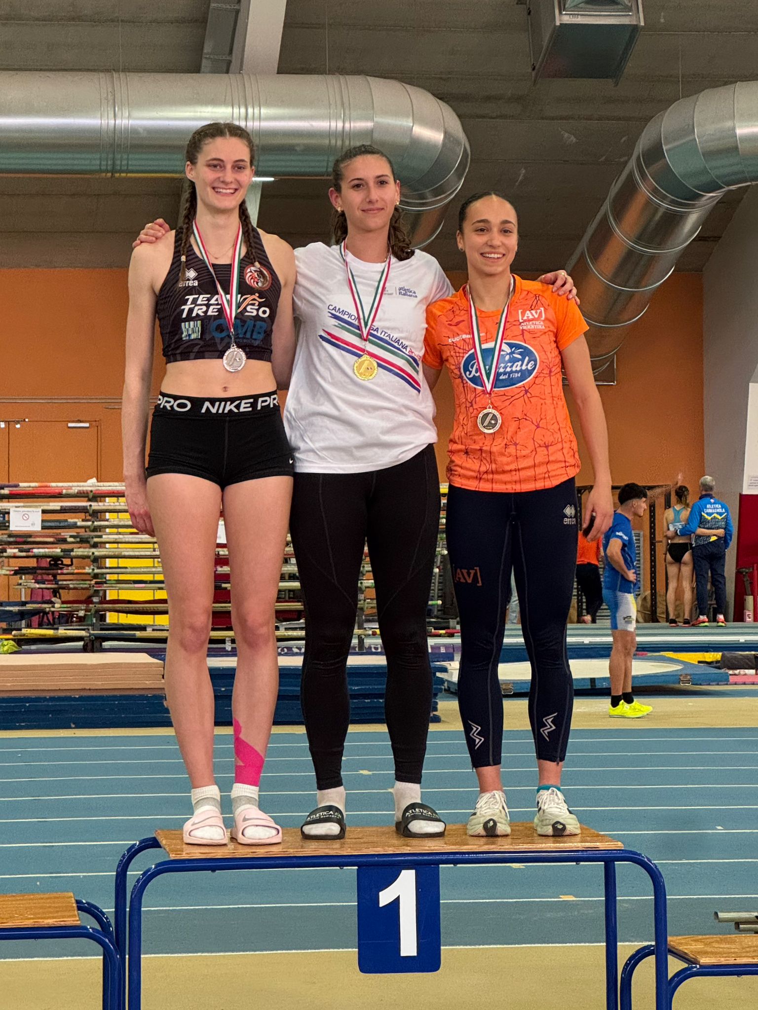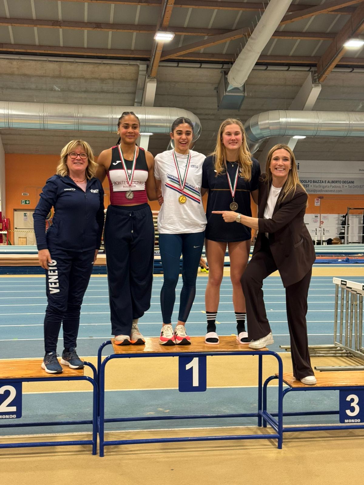 Nel pentathlon juniores f. arriva un altro podio per la Pontevecchio, con Vittoria Grandi al 2° posto con 3695 punti, punteggio a soli 27 punti dal primato regionale stabilito da Sara Capponcelli nel 2008. La Grandi aveva vinto il titolo di prove multiple indoor nel 2024 da allieva e complessivamente sale a 6 podi conquistati ai Campionati Italiani, grazie ad altri 3 argenti nel triplo tra cadetta e allieva e il recente 2° posto nel lungo juniores.