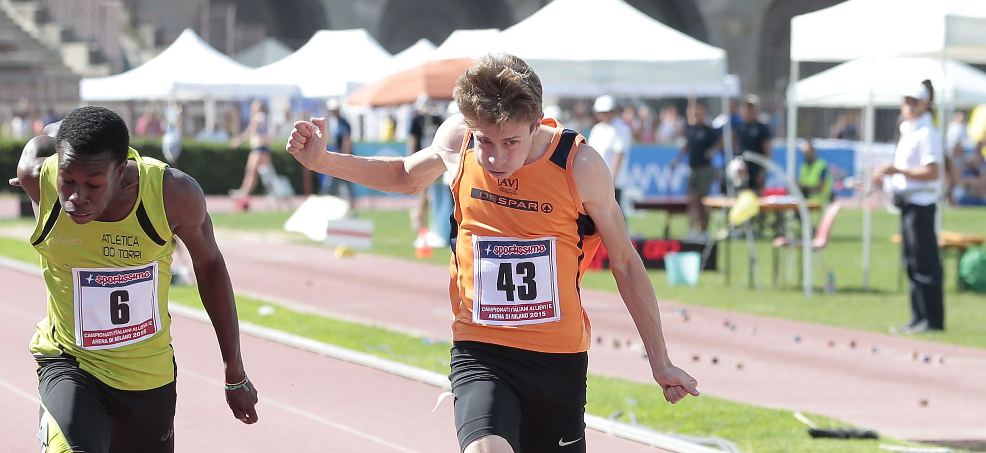 Continua all’insegna dei secondi posti la partecipazione veneta ai campionati italiani allievi di Milano. Dopo i due argenti della prima giornata (Emma Giradello nei 100 e Laura De Marco nei 2000 siepi), oggi gli atleti della regione hanno conquistato addirittura otto piazze d’onore. Con un rammarico particolare per il vicentino Michele Rancan (foto), secondo nei 200 in 21”75, stesso tempo attribuito al vincitore Christian Bapou: tre millesimi hanno deciso l’assegnazione della maglia tricolore a quest’ultimo. Gli altri argenti? Il bellunese Alberto Dal Sasso negli 800 (1’55”89), il padovano Samir Masato nel giavellotto (65.13), il veneziano (di maglia friulana) Giovanni Gorgato nel martello (57.39) e, tra le allieve, la bellunese Ilaria Fantinel nei 3000 (10’15”21), le padovane Gioi Spinello e Alice Lunardon rispettivamente nei 400 ostacoli (1’01”31) e nel lungo (5.63) e la trevigiana Giorgia Niero nell’alto (1.73). Bronzi per il vicentino Mattia Zagotto nel lungo (6.78), per i ragazzi della 4x100 della Bentegodi (43”75) e per la veronese Sara Aiani nell’alto (1.69).