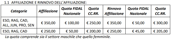 Di competenza dei vari Comitati Provinciali e la Tassa di approvazione verrà deliberata dai rispettivi CP ma non