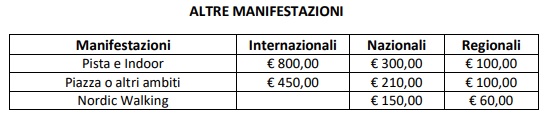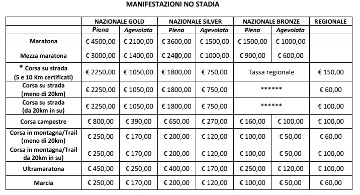 Per le manifestazioni nazionali di corsa su strada gli organizzatori dovranno versare al Comitato Regionale 1€