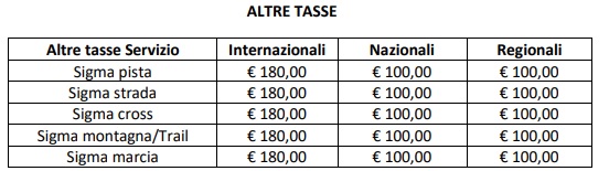 Per le manifestazioni la cui durata supera le 5 ore dalla partenza dell'orario di ritrovo gara alla pubblicazione dei risultati dell'ultima gara e in base al numero dei partecipanti, il costo del Sigma è di 180,00€