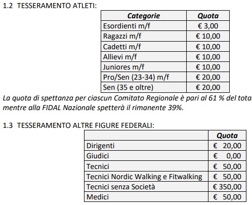 per ogni atleta classificato dalla categoria Allievi in su (indipendentemente dal tesseramento (FIDAL o EPS).
