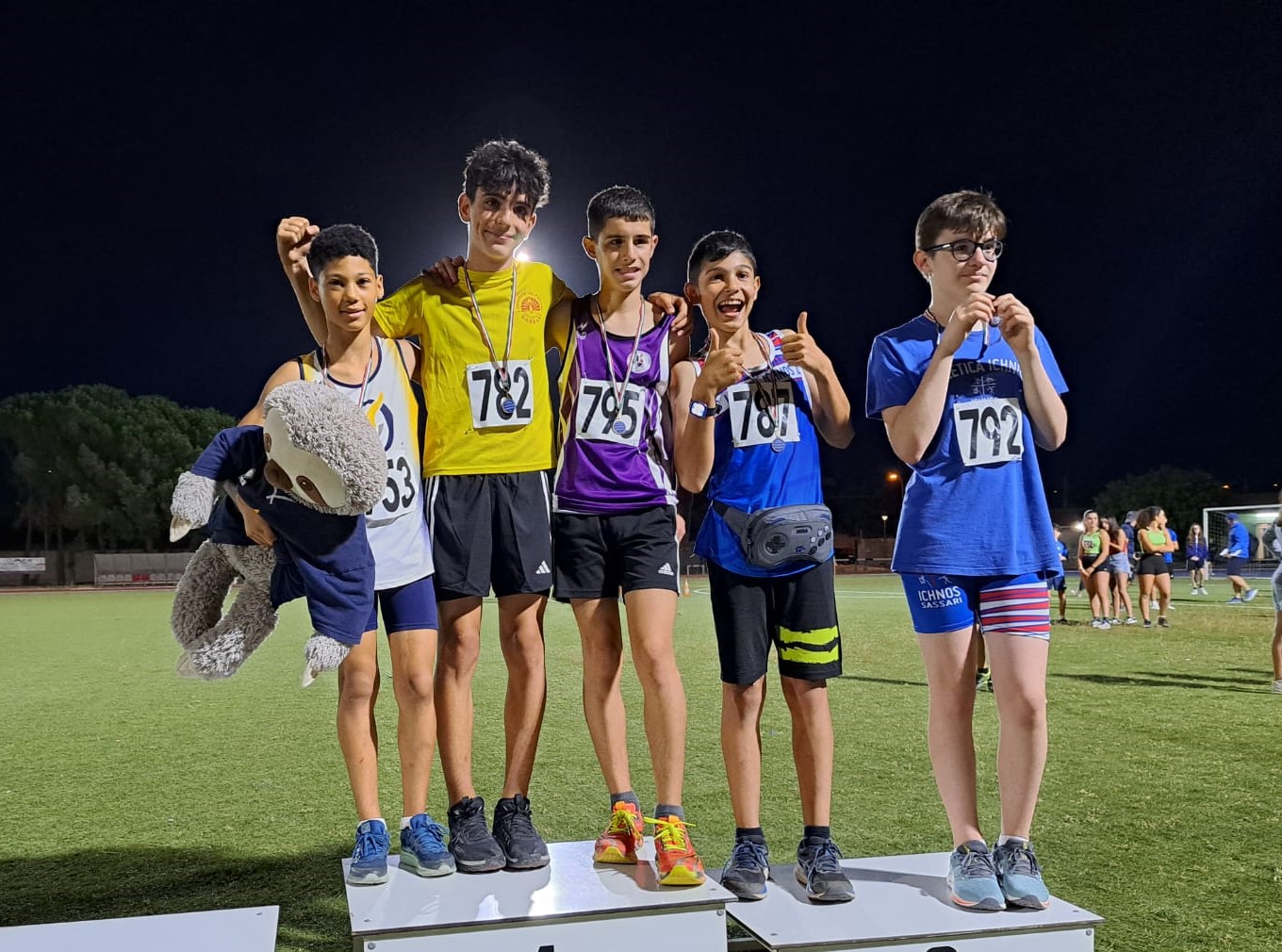 23 Giugno 2024Nel tetrathlon A ragazzi pronostico confermato con Nicolò Folino (Academy Olbia) che, con 2768 punti (60 metri in 8.03, 1,30 nell'alto, peso a 9,21 metri e 1:32.98 nei 600 metri), ha prevalso su Leonardo Taris (Nuova Atl. Sestu), 2491, e Andrea Fois (Ichnos Sassari), 2393. Tra le ragazze, sempre nel tetrathlon A, Adele Farris (Nuova Atl. Sestu), con 2721 punti (8.67 nei 60 piani, 1,27 nell'alto, 9,15 nel peso e 1:50.14 nei 600), si è imposta su Sara Musa (Atl.