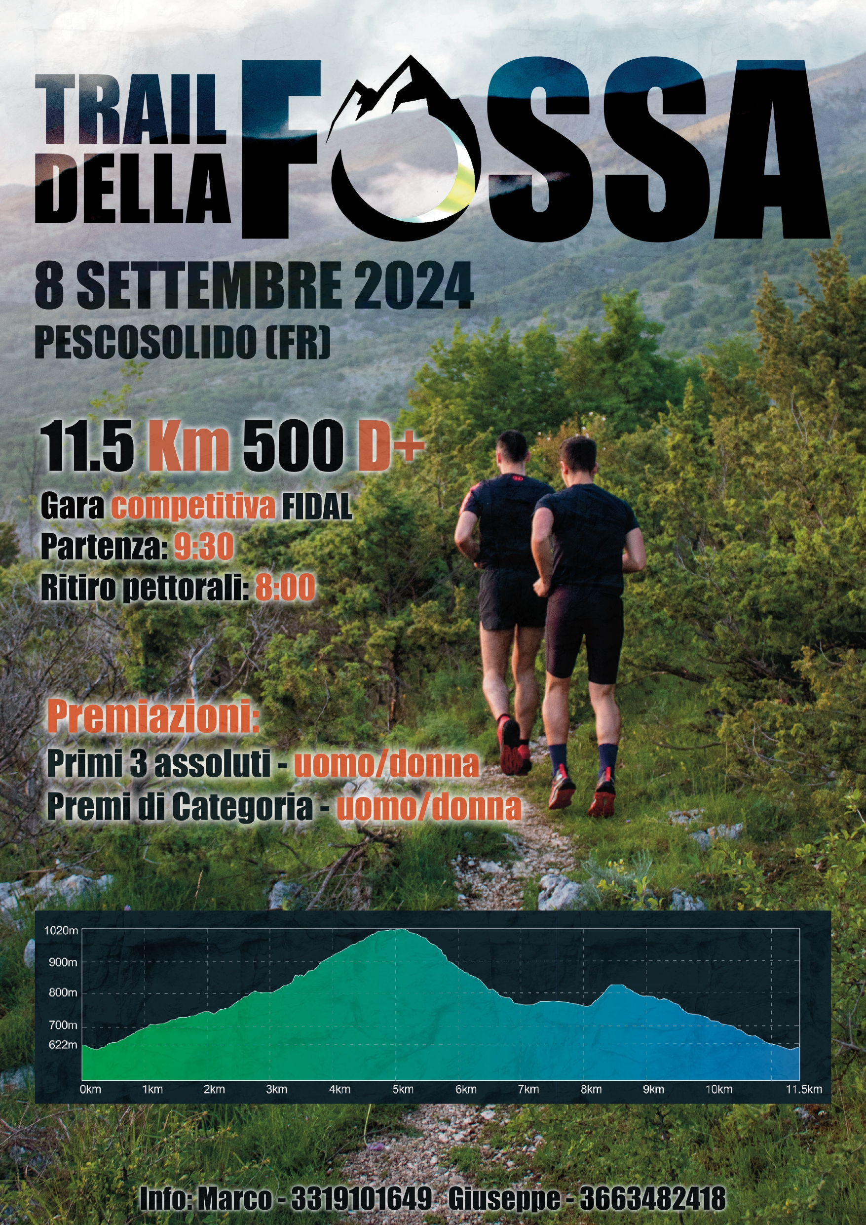 Partenza alle ore 9.30 in località Corso Umberto I°. Percorso con dislivello positivo di 500 metri: la prima parte del percorso attraversa il cuore del paese; nella seconda si sviluppa interamente in salita, serpeggiando tra sentieri di montagna ben tracciati e segnalati; la terza parte inizia con una discesa su un sentiero inizialmente tecnico, che richiede particolare attenzione, per poi gradualmente addolcirsi nel sottobosco; nell'ultima fase del percorso, gli atleti affronteranno la massima sfida: una salita di circa 400 metri con una pendenza media del 25% e picchi del 35%, seguita da una discesa attraverso un bosco di ginepri che circonda la Fossa della Defenza, una caratteristica dolina carsica del percorso. Il sentiero finale riporterà gli atleti sulla strada asfaltata percorsa all'inizio della gara.