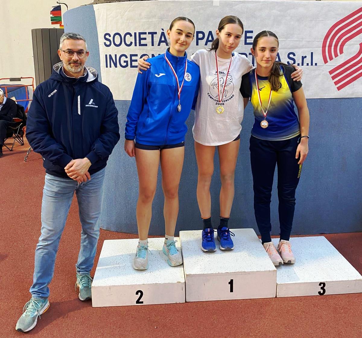 Al femminile è la cadetta Alice Pallanti a vincere (2011, Centro Atletica Piombino)  con la misura di 1.60 davanti a Viola Pizzanelli (Pontremolese) 1.55 e Rebecca Idemu Ikponmwen (2011 Atetica Livorno) 1.51. Nel salto triplo Cadette gara davvero equilibrata con Giulia Biccone dell'Atl. Borgo a Buggiano che salta 10.78 precedendo Sofia Buratelli (Centro Atletica Piombino) 10.74 con Michelle Rose Tommasini (Atletica Firenze Marathon) che chiude in 10.73.