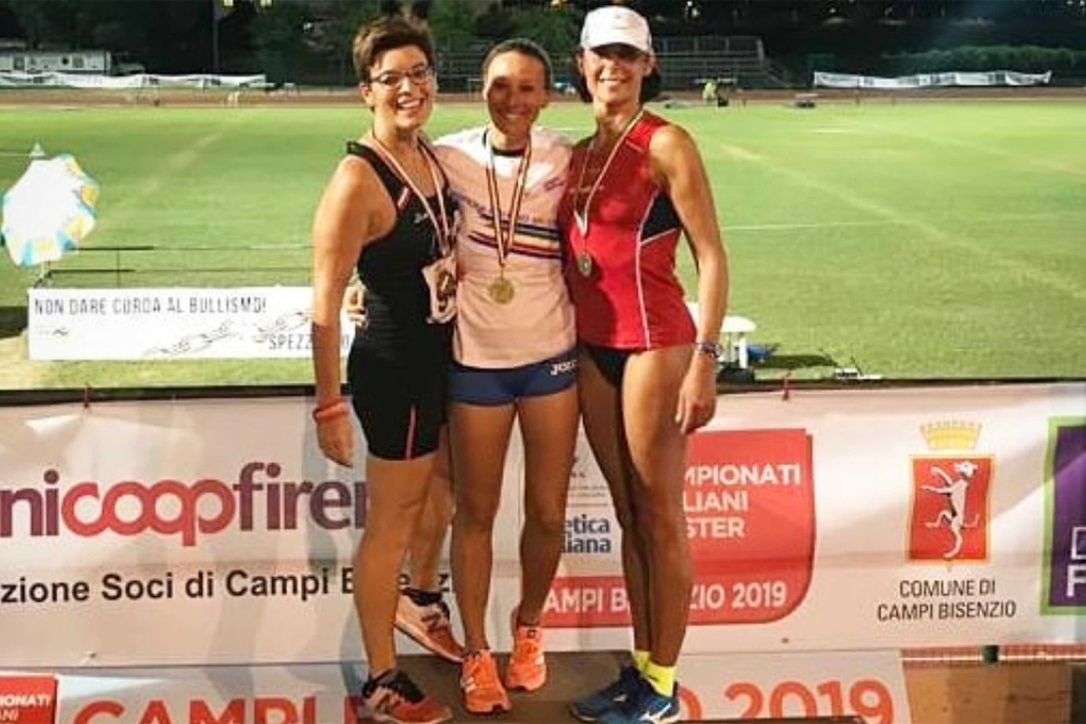 DOMENICA - Nei 200, oro per Anna Micheletti (Romatletica Footwoorks/SF65), in 32.46. Negli 800, oro per Paola D’Orazi (Romatletica Footwoorks/SF65), in 3:09.08. Oro nei 1500, per Antonella Faiola (Romatletica Footwoorks/SF40), in 5:06.57. Nei 2000 siepi, oro per Daniela Cecchetti (Romatletica Footwoorks/SF35), in 8:08.27 e bronzo per Chiara Nash (ASD RUN/SF35), in 8:15.99. Oro nel martello a maniglia per Carla Ricci (Liberatletica/SF65), con 11,51. Nel triplo, argento per Francesca Sancin (Atl. Roma Acquacetosa/SF45), con 10,25.