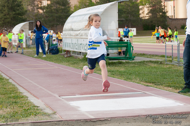 Numeri straordinari ad Orvieto per la prima tappa del Trofeo Arcobaleno riservato alla categoria esordienti. Presenze ben oltre i 550 atleti gara, spalti gremiti e tanti istruttori a seguire i baby dell'atletica umbra. Nella gara organizzata dalla Libertas Orvieto sono anche stati assegnati i titoli regionali dei 50 metri (per tutte le categorie) e del salto in alto. Ad Emma Fatone (Libertas Orvieto) è riuscita addirittura la doppietta vista la vittoria nella finale dei 50 con 7"1 e quella nell'alto con 1.20. Doppio centro che non è riuscito per un soffio a Francesco Patumi (Lib. Arcs Perugia) vittorioso nei 50 metri con 7"4 e secondo nell'alto vinto dal figlio d'arte Francesco Almadori (Gs A. Monti) a quota 1.24 (superato alla prima prova dal vincitore, mentre Patumi ci è riuscito alla seconda).