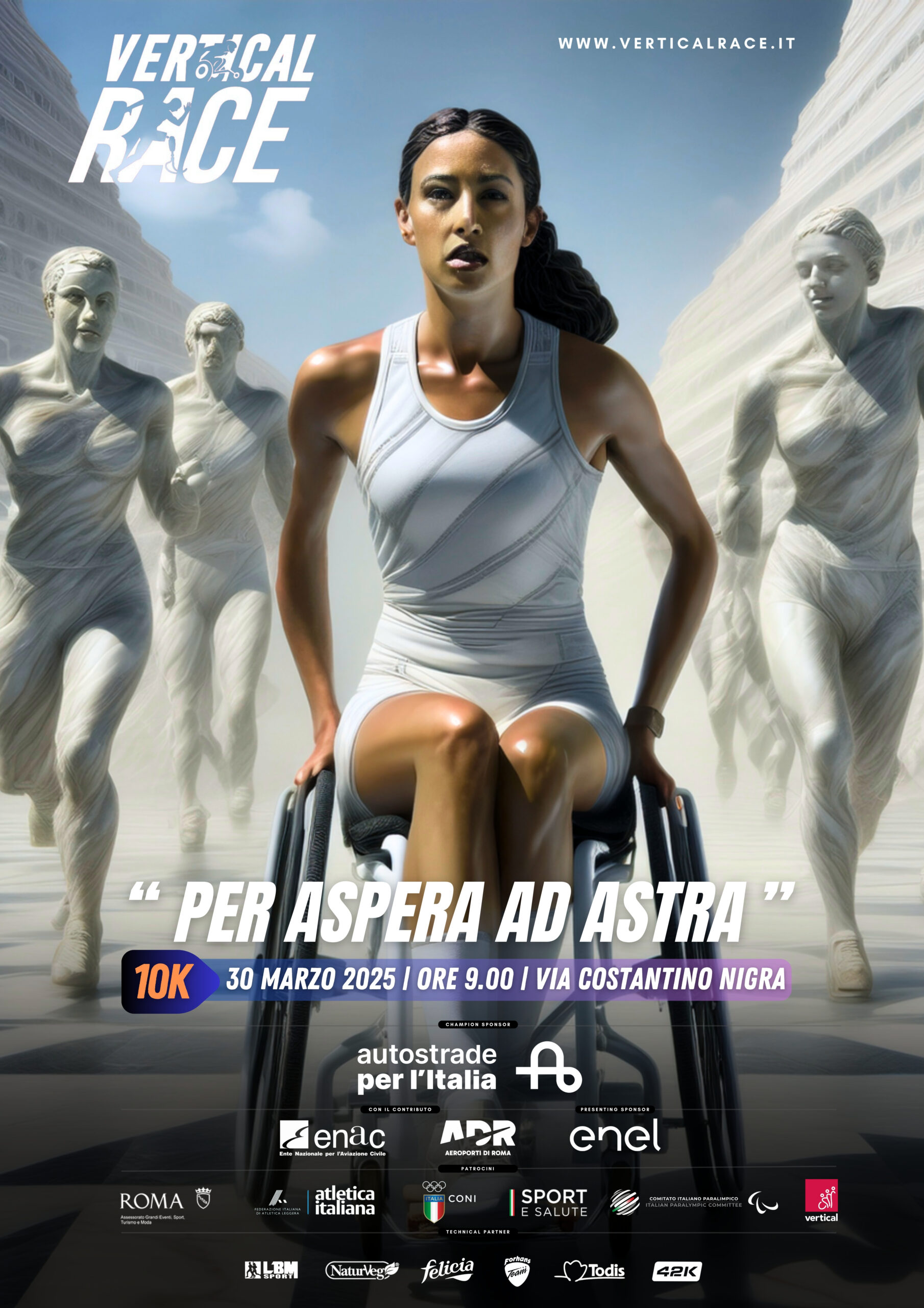 “Abbiamo voluto organizzare questa manifestazione-ha sottolineato Fabrizio Bartoccioni Presidente della Fondazione Vertical- con un triplice scopo: quello di regalare ai runners un evento affascinante, su un percorso che certamente diventerà caro ai romani; quello di accelerare quei processi di inclusione e di integrazione fra atleti portatori di handicap e sportivi praticanti dei quali siamo da sempre promotori e che vogliamo implementare con iniziative che abbraccino, ad ampio raggio, i diversi settori della vita sociale; per accendere i riflettori su una tematica che ci sta molto a cuore e per la quale lavoriamo da oltre 20 anni con risultati, organizzativi e mediatici, di grande effetto. Spero che la Vertical Race diventi una tradizione del podismo romano, un potente volano di sensibilizzazione che implementeremo con numerosi eventi collaterali che stiamo già studiando, nei prossimi anni “.