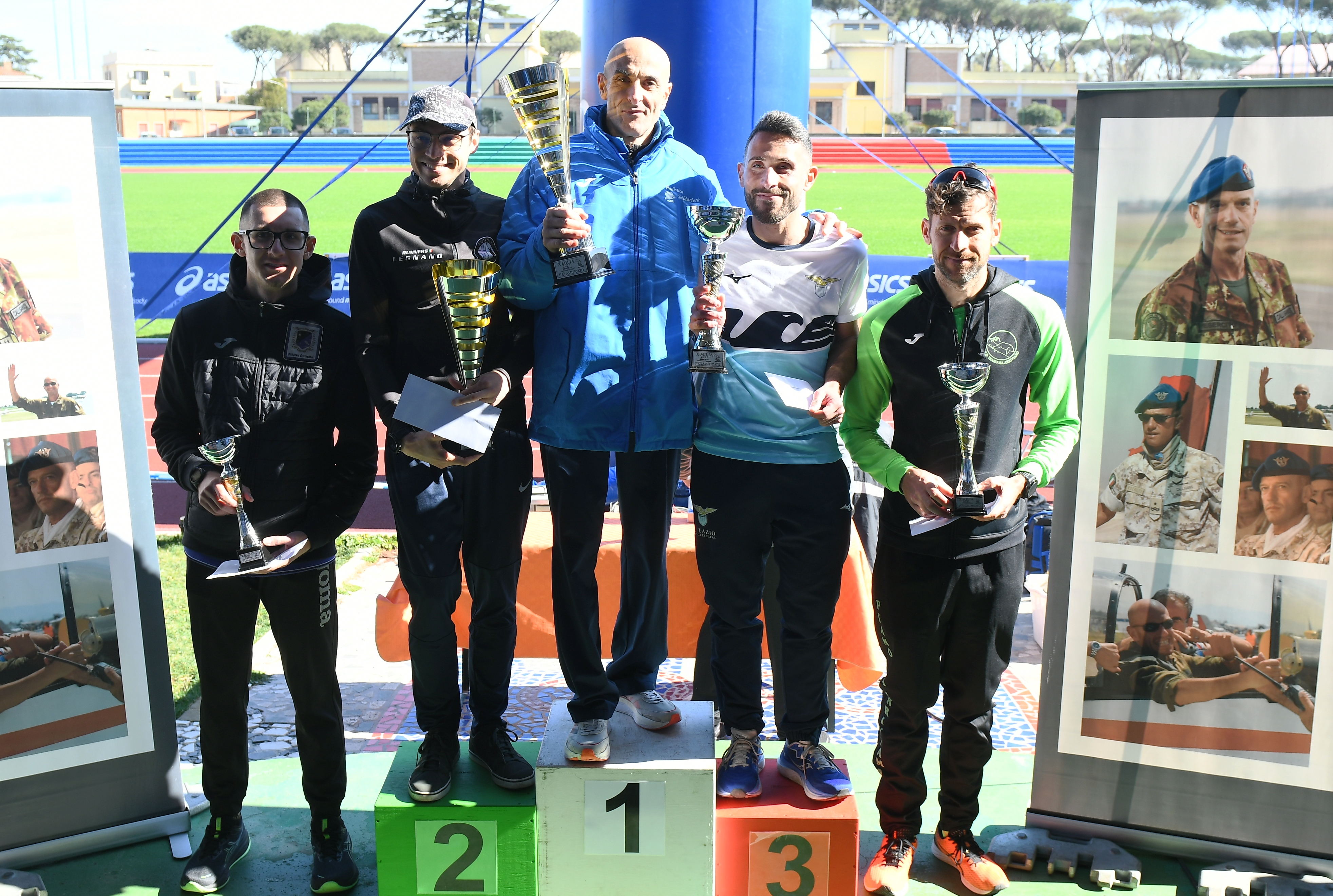 AUTORITA’ ALLE PREMIAZIONI – Una folta presenza delle autorità militari e della FIDAL, hanno presenziato alle premiazioni poste al bordo della pista di atletica leggera. Dal Col. Emmanuele Aresu a capo del Comando Comprensorio Cecchignola, che ha consentito tramite il personale la sicurezza su tutto il tracciato di gara; il comandante del Centro Sportivo Olimpico dell’Esercito Col. Fabio Martelli, il Ten.Col. Marco Carfì, il Gen. B. Dott. Paolo Raudino. I consiglieri regionali della Federazione Alice Finocchiaro, Patrizio Mancini e Gianfranco Balzano.