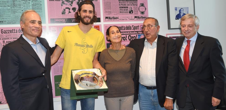 | 11 Ottobre 2016 Tamberi riceve il Premio Cannavò Oggi a Milano, il campione del mondo indoor e d'Europa di salto in alto ha ricevuto il prestigioso riconoscimento intitolato allo storico direttore de La Gazzetta dello Sport | |