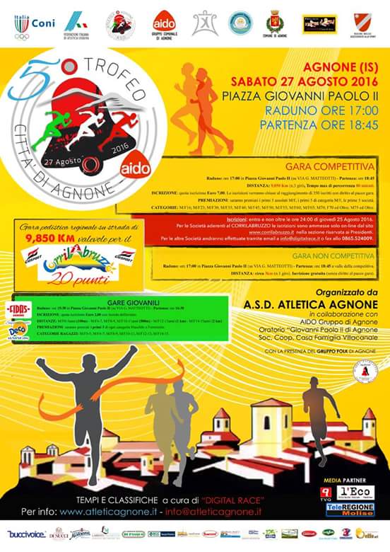 | 19 Agosto 2016 XXX Edizione della “Maratonina dei 2 Colli” Cinque le società molisane che hanno partecipato alla competizione