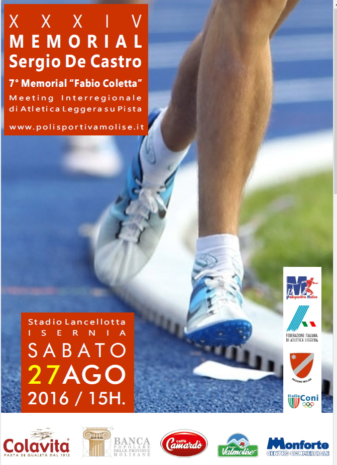 | 21 Agosto 2016 XXXIV Memorial "Sergio De Castro" Si svolgerà presso lo stadio “Lancellotta” di Isernia il XXXIV Memorial “Sergio De Castro” | |