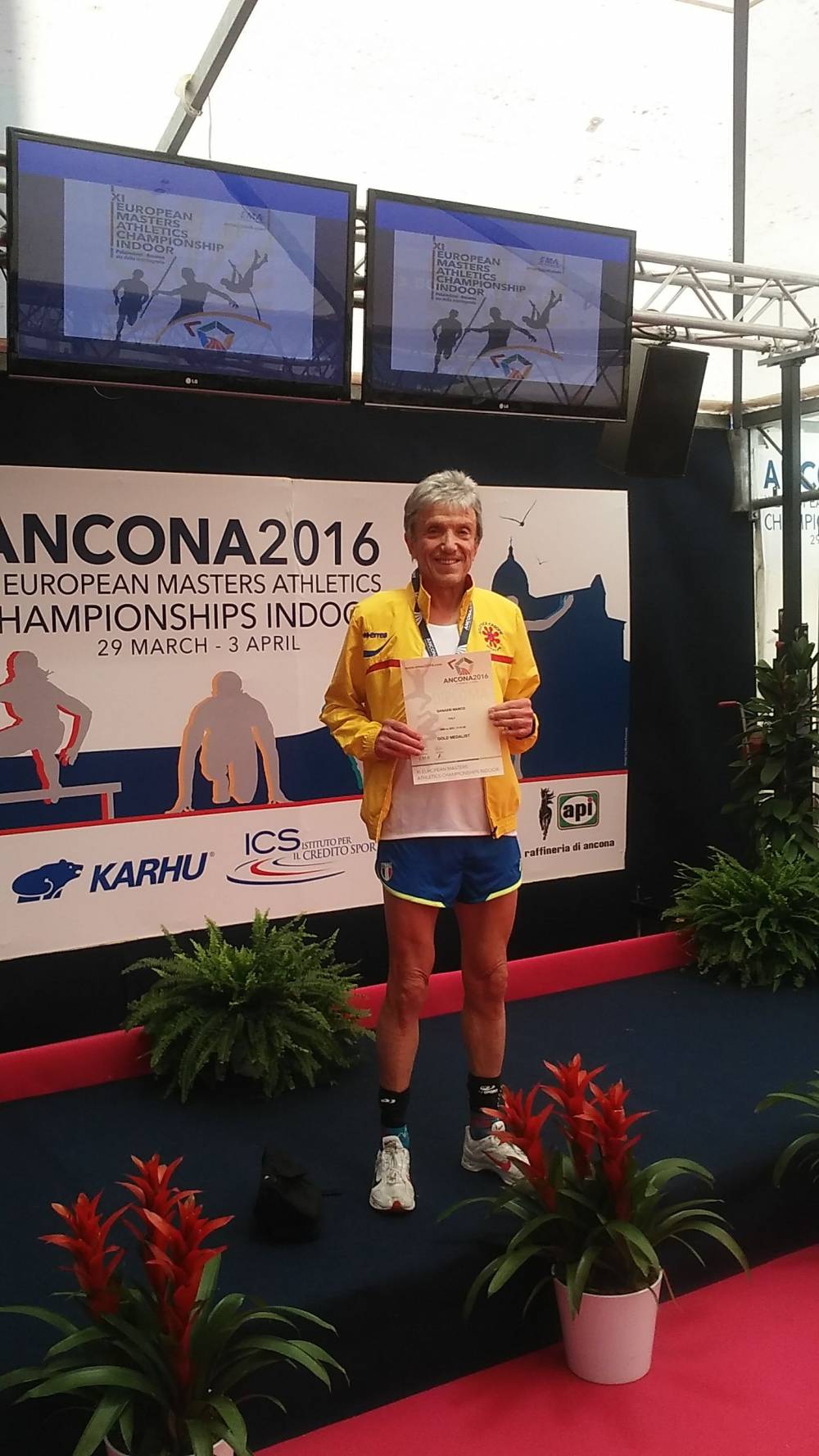 | 25 Maggio 2016 Marco Ganassi campione europeo 10km m70 Il bolognese Marco Ganassi ha vinto il titolo di campione europeo della 10 km su strada in Portogallo | |