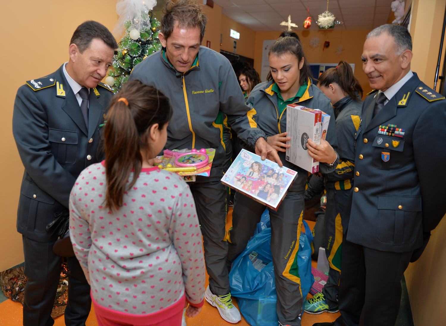 | 07 Dicembre 2017 Azzurri insieme ai baby-pazienti di Ostia Oggi Fabrizio Donato e Sonia Malavisi hanno preso parte alla consegna di un’attrezzatura medicale al reparto di pediatria dell’ospedale Grassi da parte delle Fiamme Gialle | |
