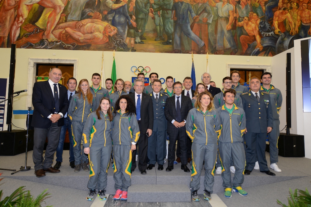 | 13 Dicembre 2017 Le Fiamme Gialle lanciano il 2018 Oggi a Roma la presentazione della stagione e del calendario gialloverde con il presidente FIDAL Alfio Giomi e gli atleti Antonella Palmisano, Filippo Tortu e Fabrizio Donato | |