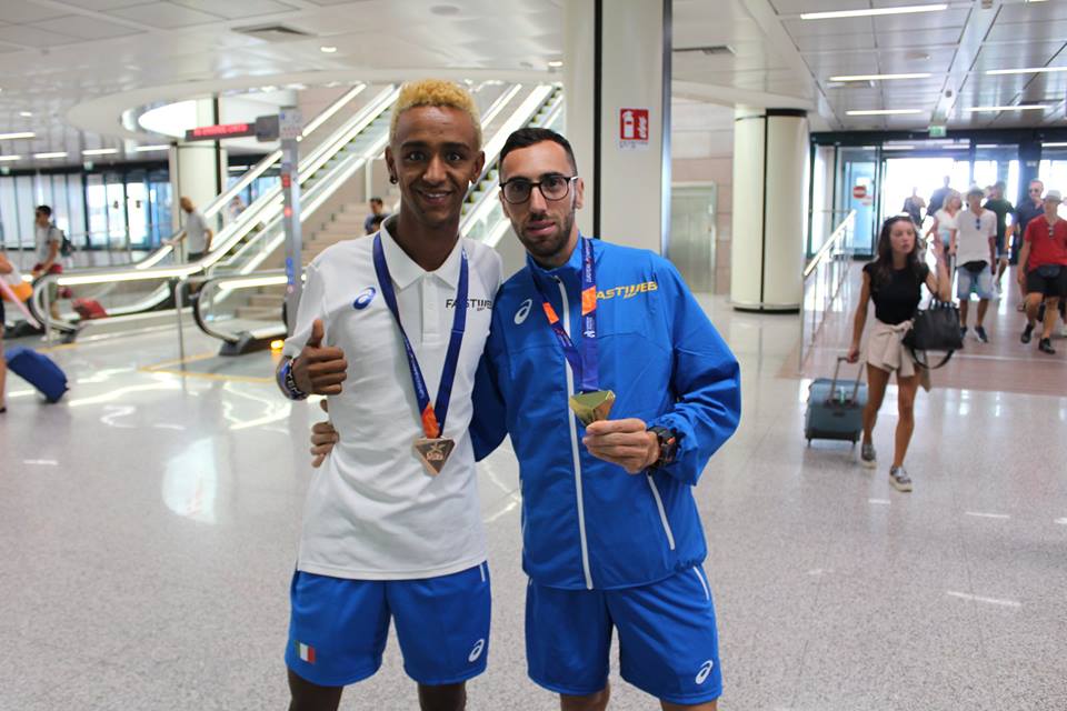 | 14 Agosto 2018 Post Berlino: tempo di foto e selfie Grande accoglienza a Fiumicino per Isabel Mattuzzi e Yeman Crippa, oggetto di foto e selfie ricordo da parte degli appassionati di atletica dopo gli Europei di Berlino | |
