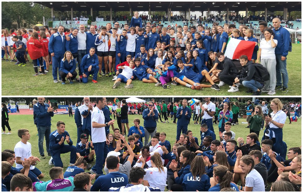 | 05 Ottobre 2019 Day1 criterium U16, 7 medaglie e Lazio sul podio Dentato show negli ostacoli. Giampaolo dominatore nella marcia e Bonanni vola nell’asta. Tessitore d’oro nel triplo con il PB. Rappresentativa 2° al maschile e 3° al femminile | |