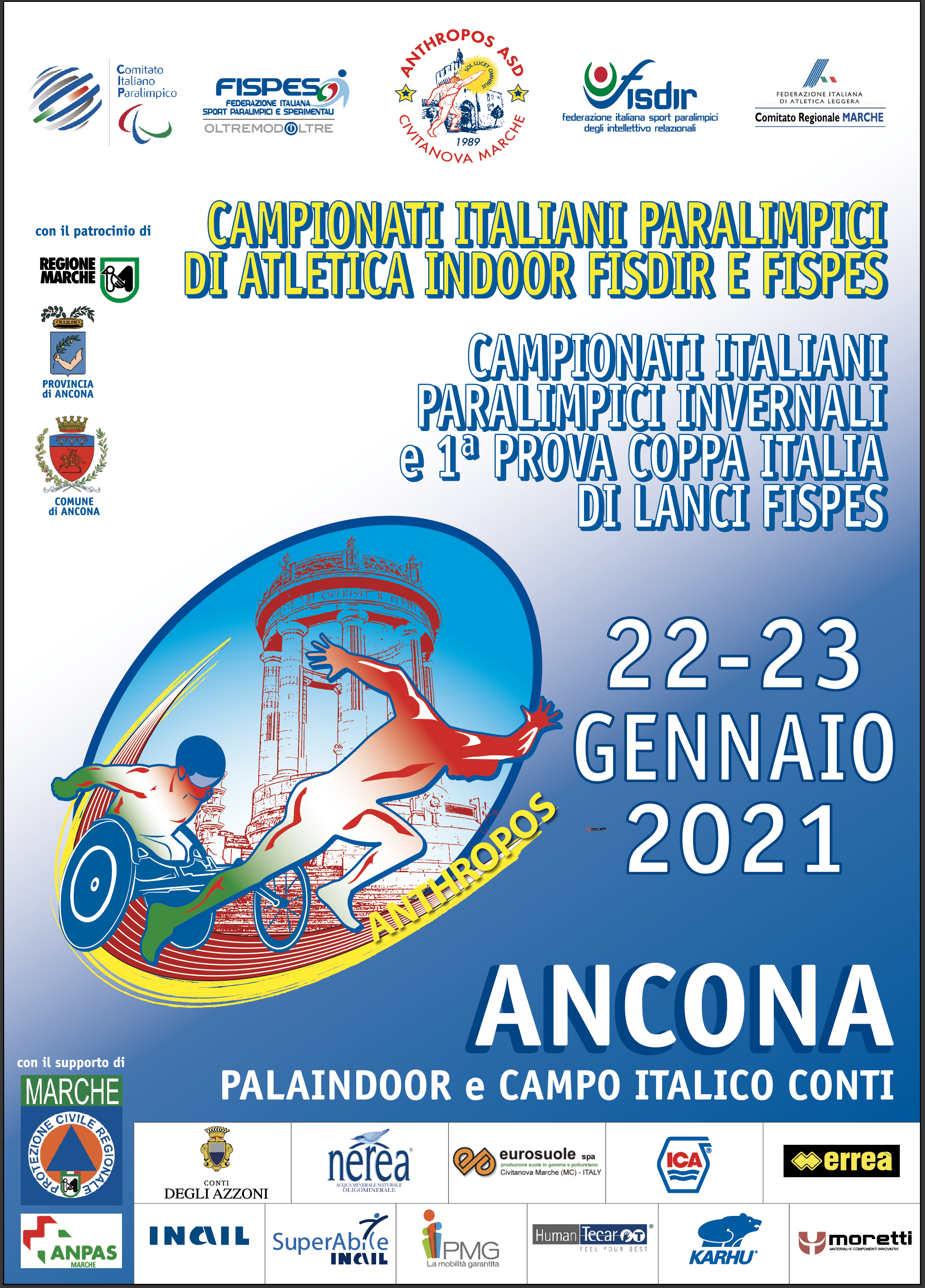 | 19 Gennaio 2021 Paralimpici per i tricolori indoor e lanci Venerdì 22 e sabato 23 ad Ancona le rassegne tricolori che aprono la stagione | |