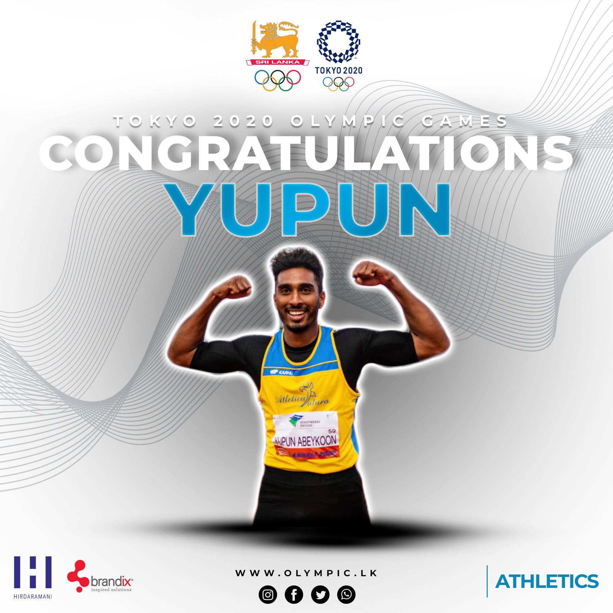 | 02 Luglio 2021 Abeykoon a Tokyo: è il primatista dello Sri Lanka Yupun, sprinter di Atletica Futura Roma, farà le Olimpiadi. Ha un PB di 10.15 nei 100 ed è primo nelle liste del suo paese. Si allena a Castelporziano con Claudio Licciardello. Pioggia di complimenti social per "il più veloce del sud est asiatico" | |