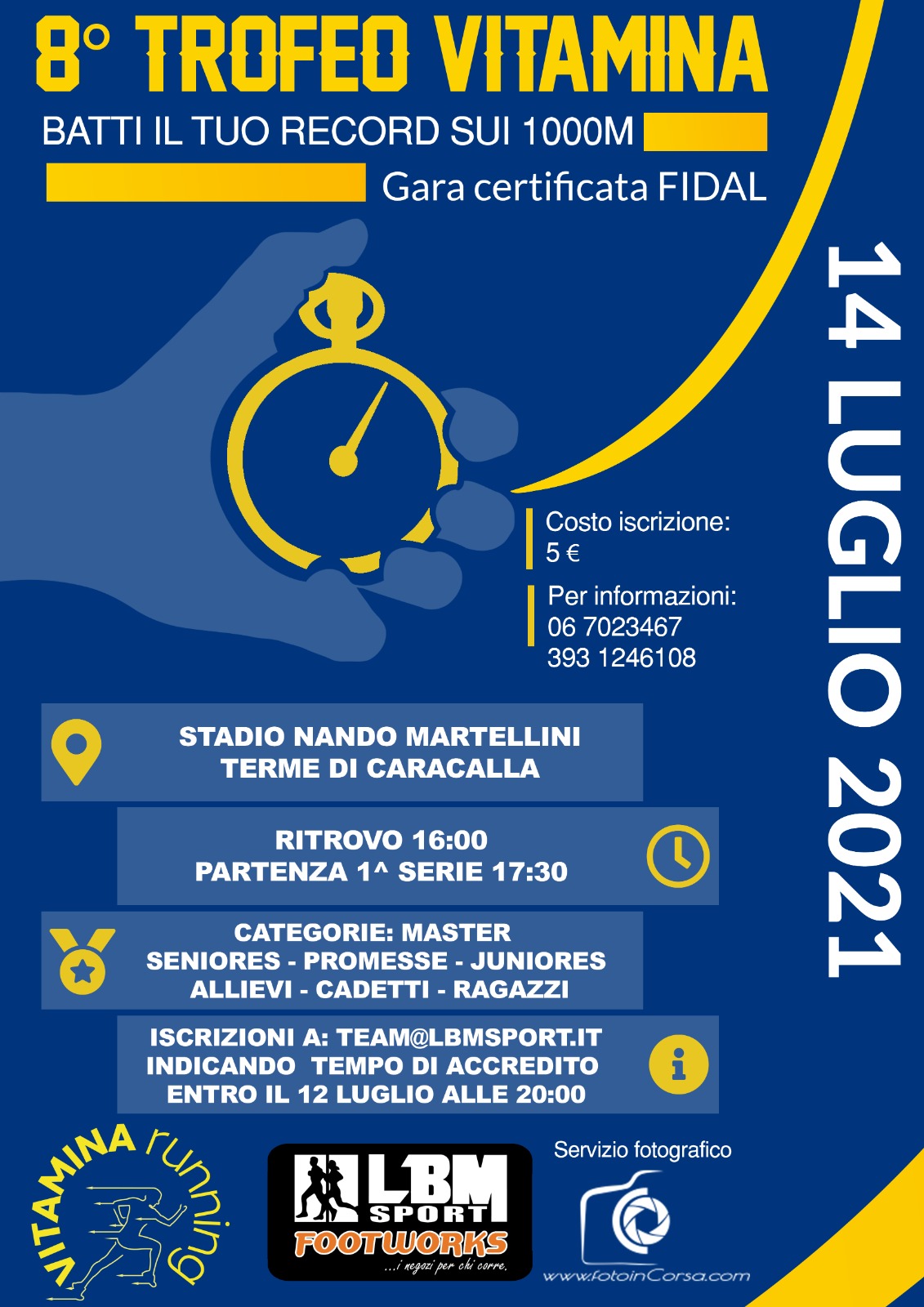 | 14 Luglio 2021 A Caracalla il ''Trofeo Vitamina'' Batti il tuo record sui 1000 metri: pomeriggio di corsa nel cuore della Capitale con LBM | |