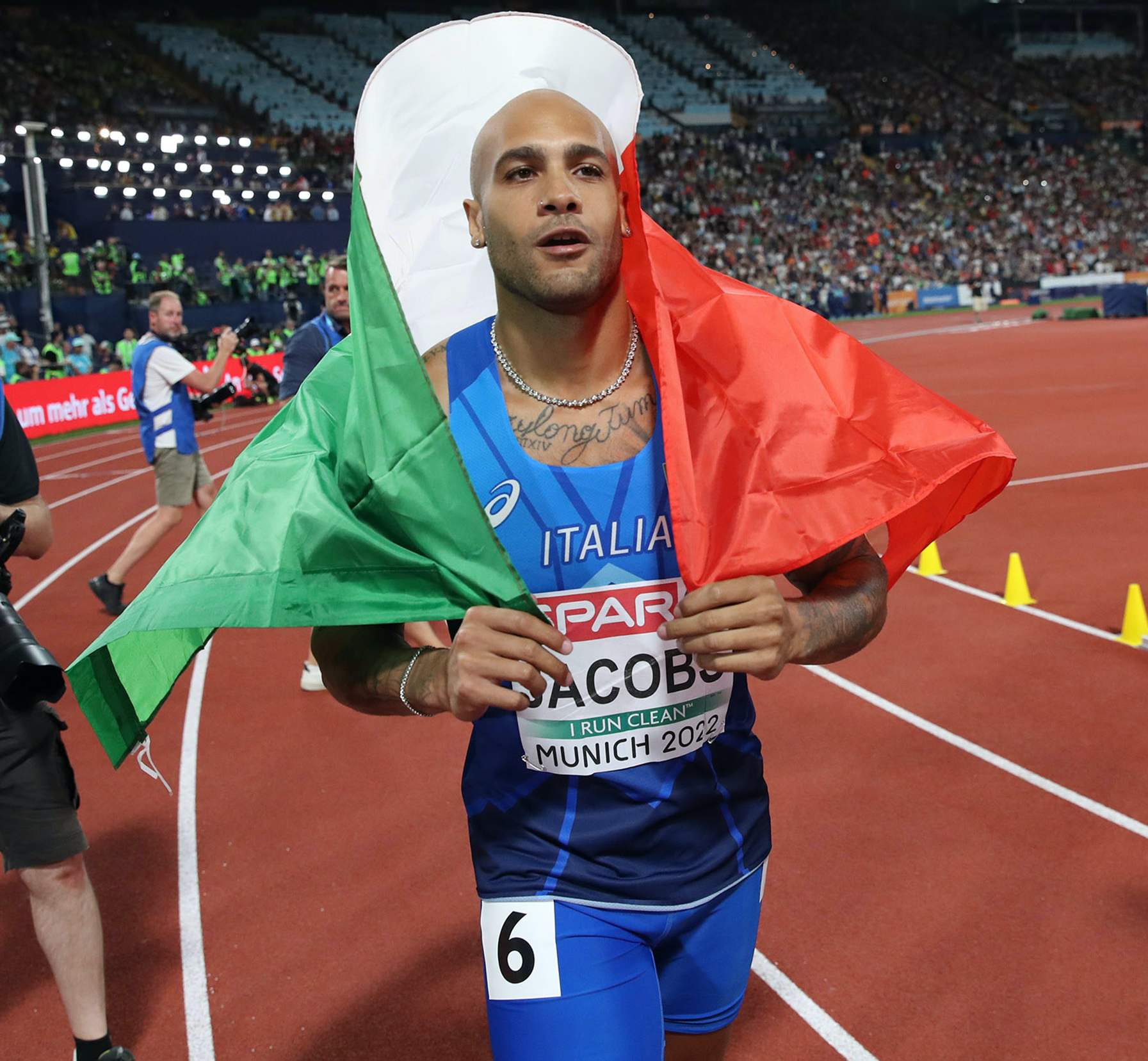 | 17 Settembre 2022 Jacobs ha detto sì, il giorno più bello! Il matrimonio del campione olimpico a Gardone Riviera, sul lago di Garda, con Nicole Daza. A festeggiarlo anche gli ori olimpici Tamberi e Desalu, il presidente FIDAL Mei e il presidente del CONI Malagò | |