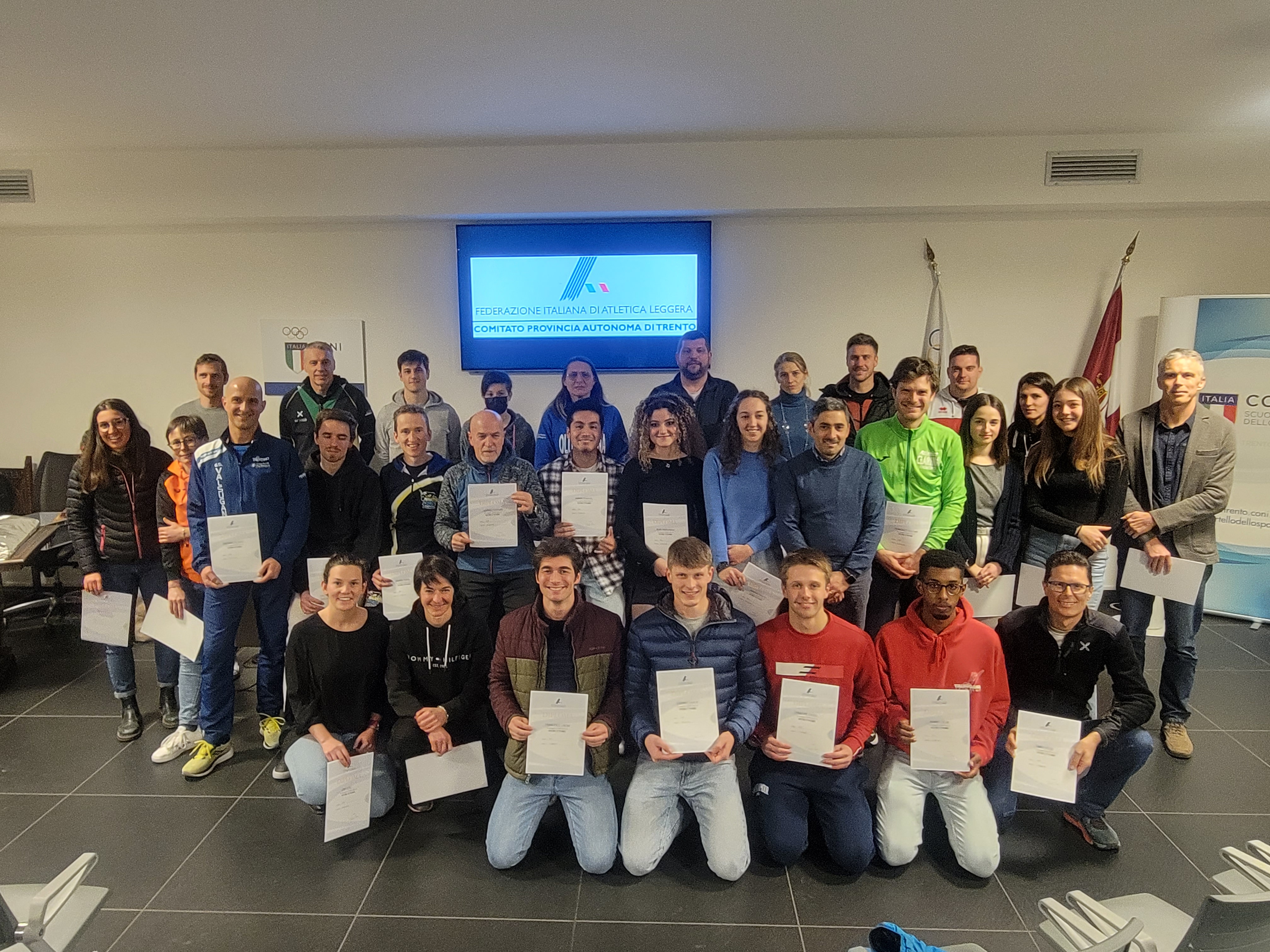 | 09 Febbraio 2023 Un brindisi ai nuovi istruttori di atletica leggera Consegna ufficiale degli attestati al termine del corso di formazione di tecnici di primo livello che ha coinvolto 43 nuovi istruttori | |